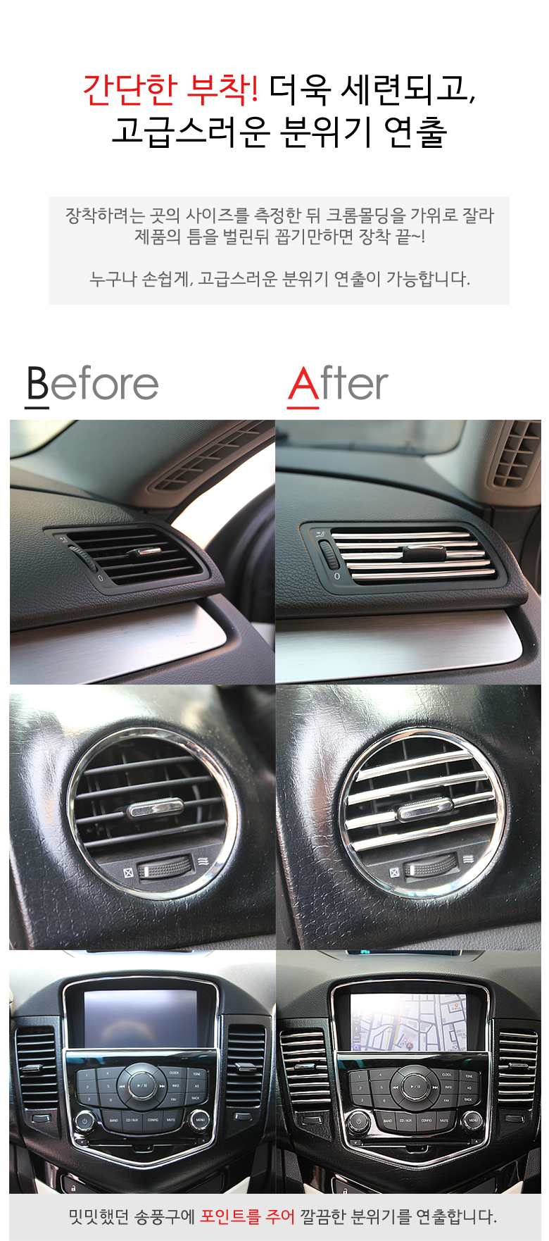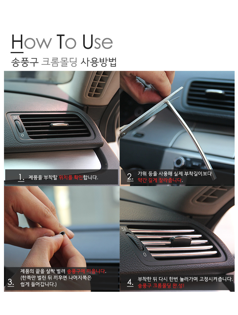 차량용송풍구크롬몰딩 1M /자동차용품/차량실내인테리어/송풍구/셀프인테리어 이미지/