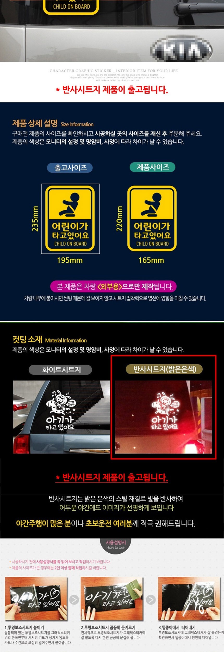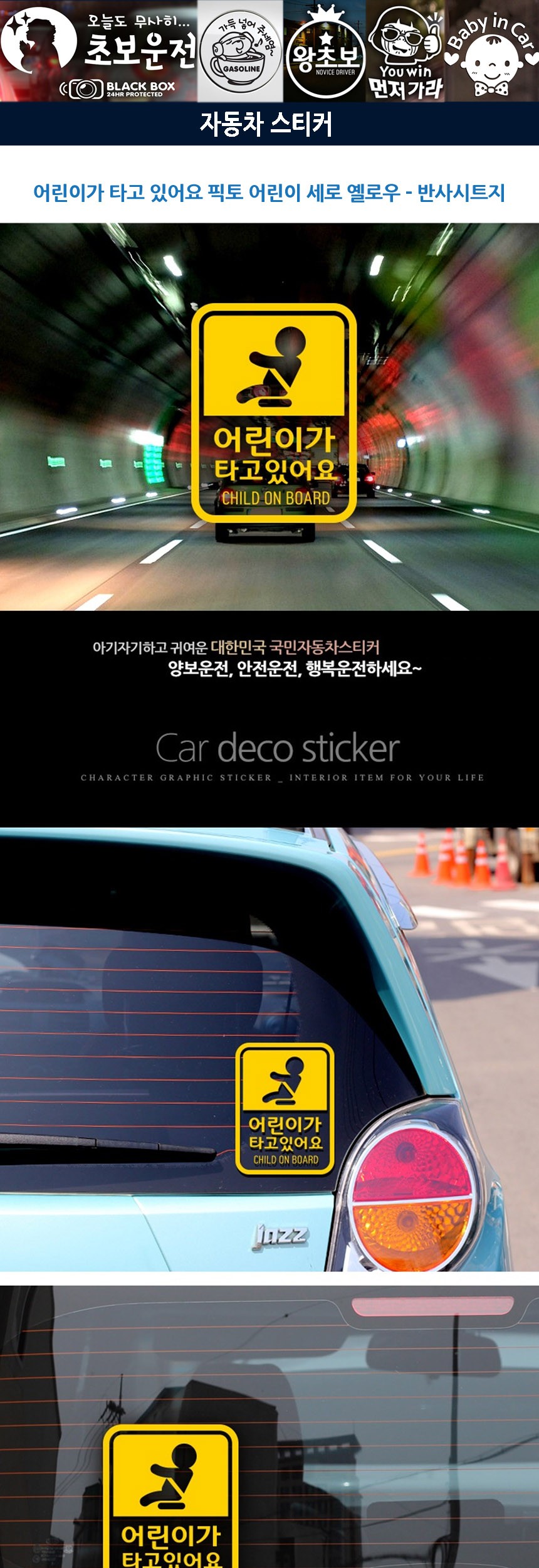 자동차스티커 픽토 어린이 세로옐로우 반사시트지 이미지/