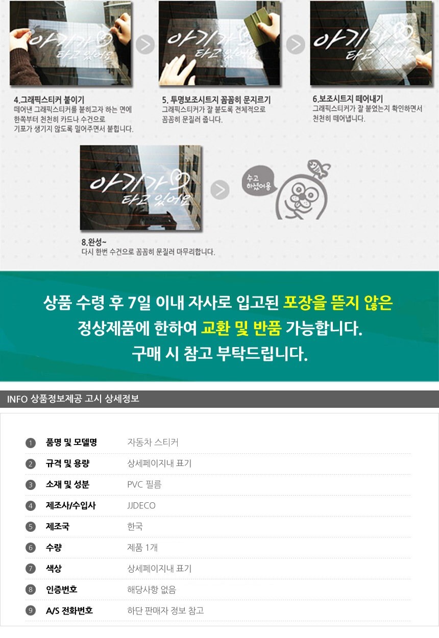• 초기제품 이상의 경우 동일한 제품으로 1:1 교환원칙, 사용후 제품이상은 A/S를 원칙으로 합니다.