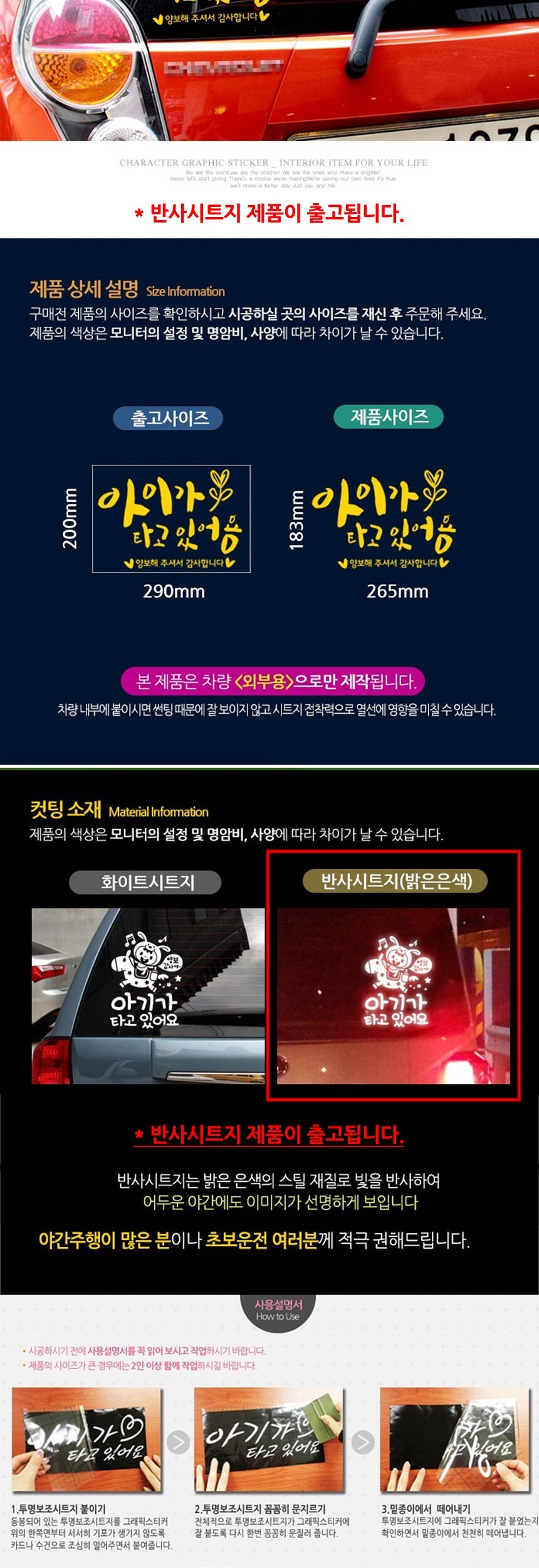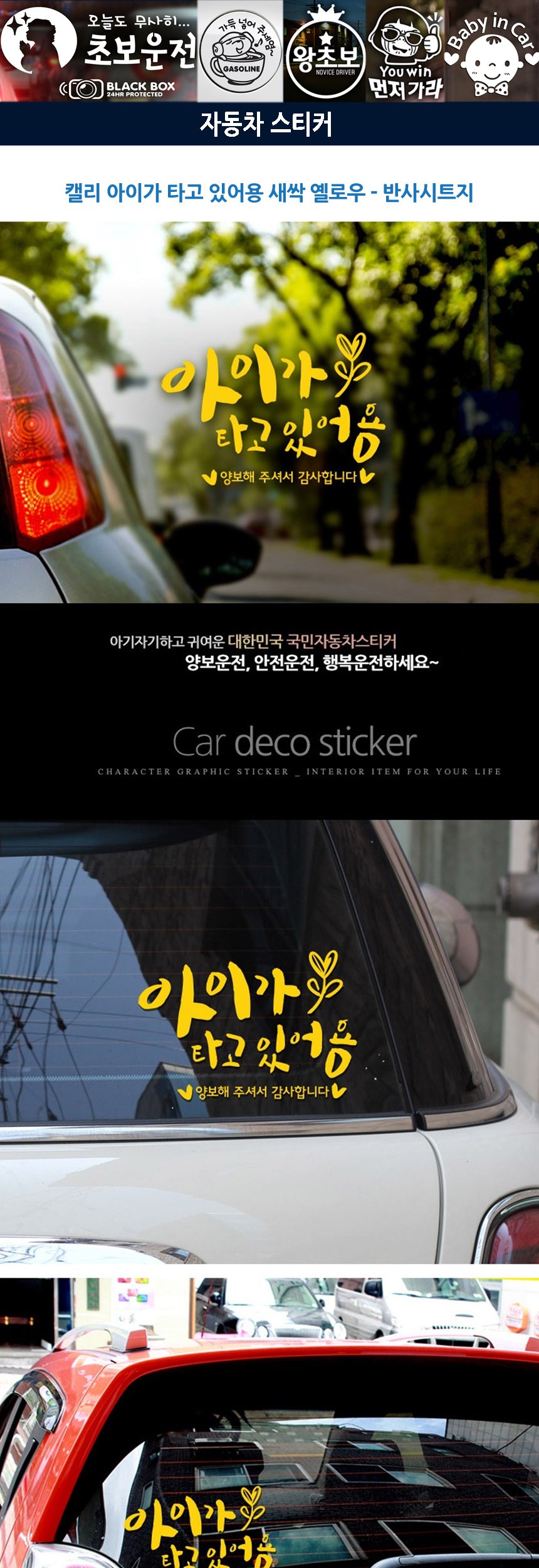 자동차스티커 아이가타고 캘리옐로우 반사시트지