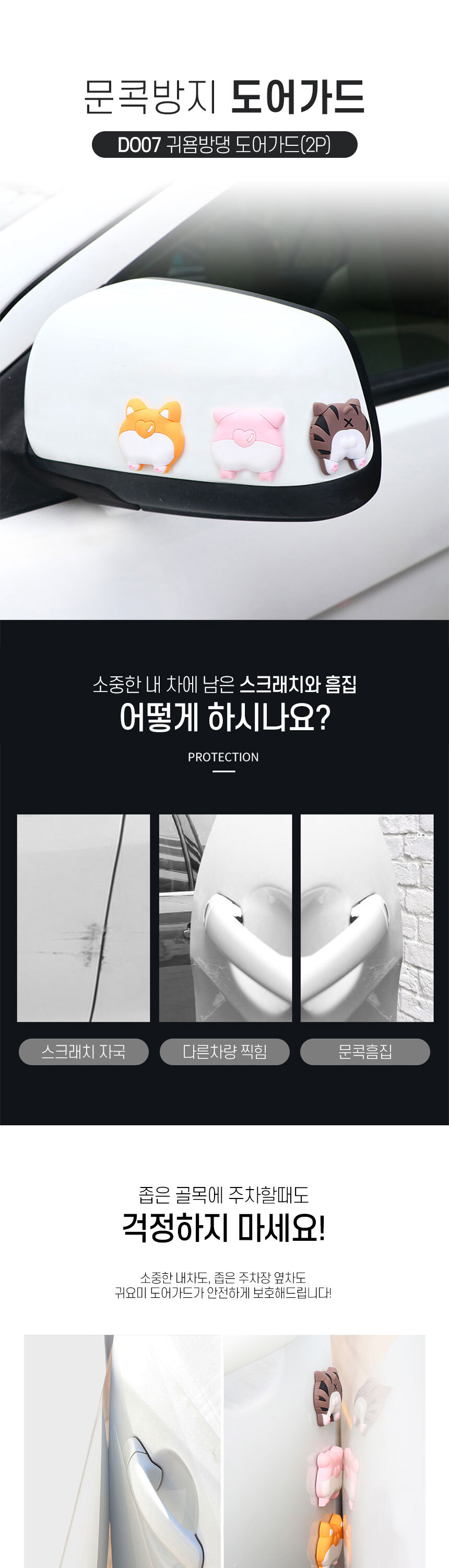 자동차용품 문콕방지가드 차량용품 DO07타입 귀욤방댕 자동차 도어가드