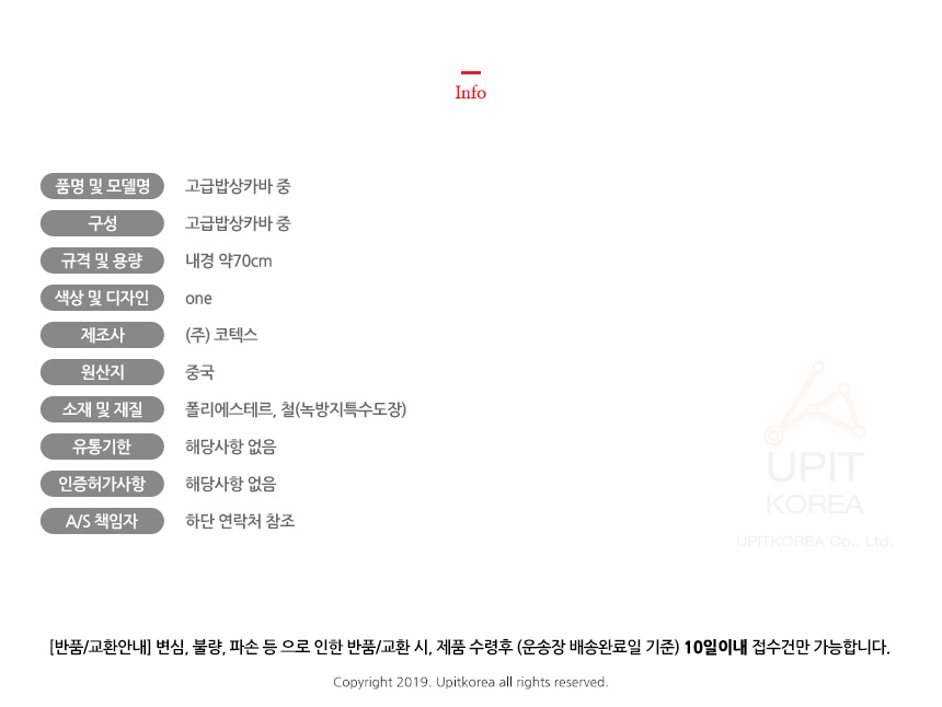 • 반품/환불조건: 도착후 1주일 이내 사용하지 않은 상태에서 가능합니다,초기제품 이상의 경우 동일한 제품으로 1:1 교환원칙, 사용후 제품이상은 A/S를 원칙으로 합니다,