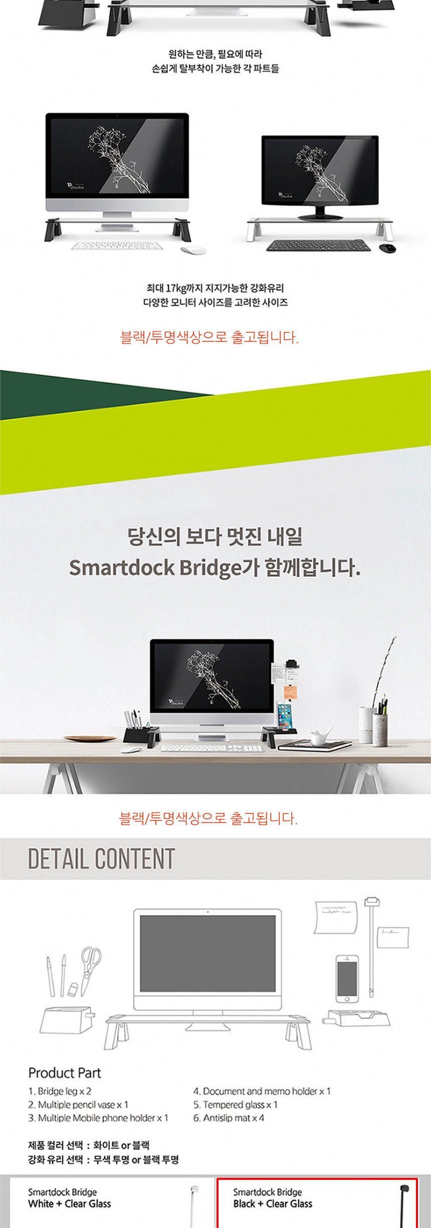 S294 스마트독 브릿지 모니터받침대 블랙 투명 이미지/