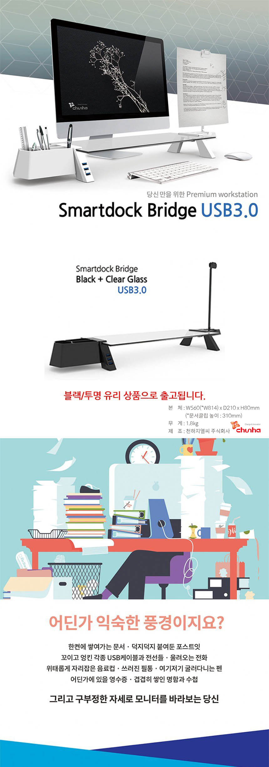 S317 스마트독 브릿지 모니터받침대 USB 블랙 투명