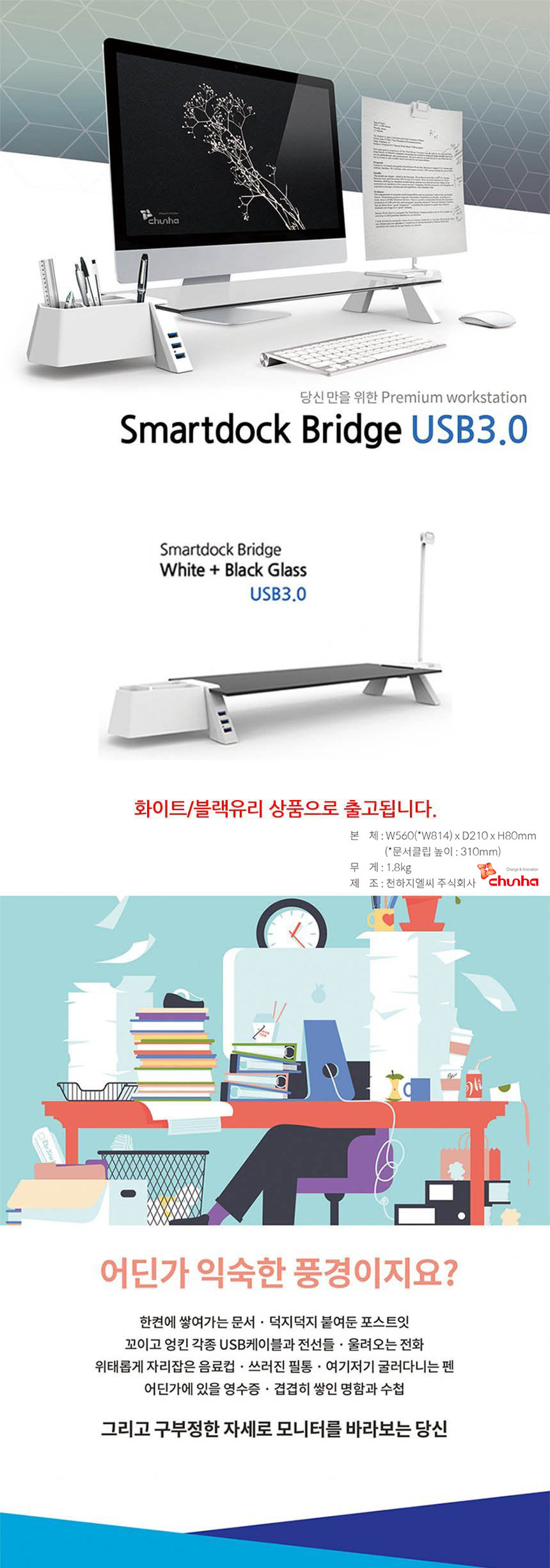 S362 스마트독 브릿지 모니터받침대 USB 화이트 블랙