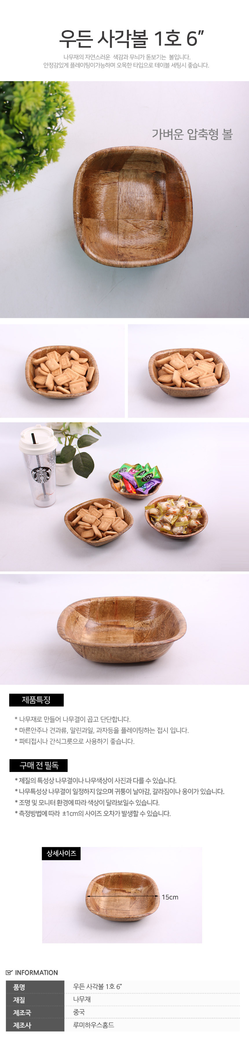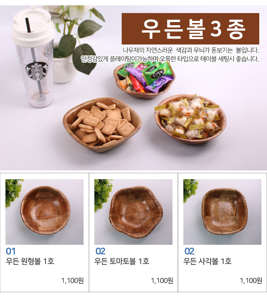 우든볼 15cm 1호 팝콘 볼 나무 접시 우드 업소용 뻥튀기 술집호프