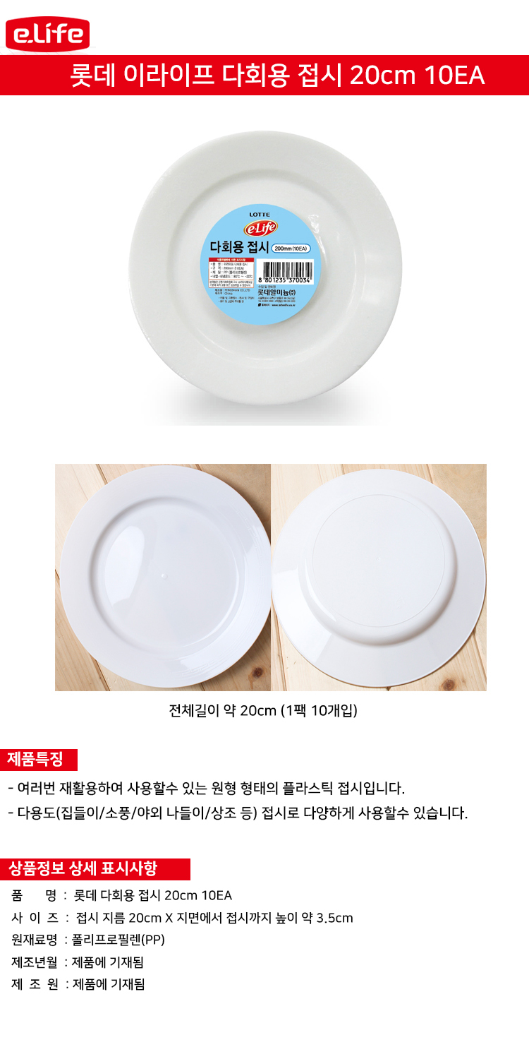 롯데 이라이프 다회용 접시 20cm 10EA 이미지/
