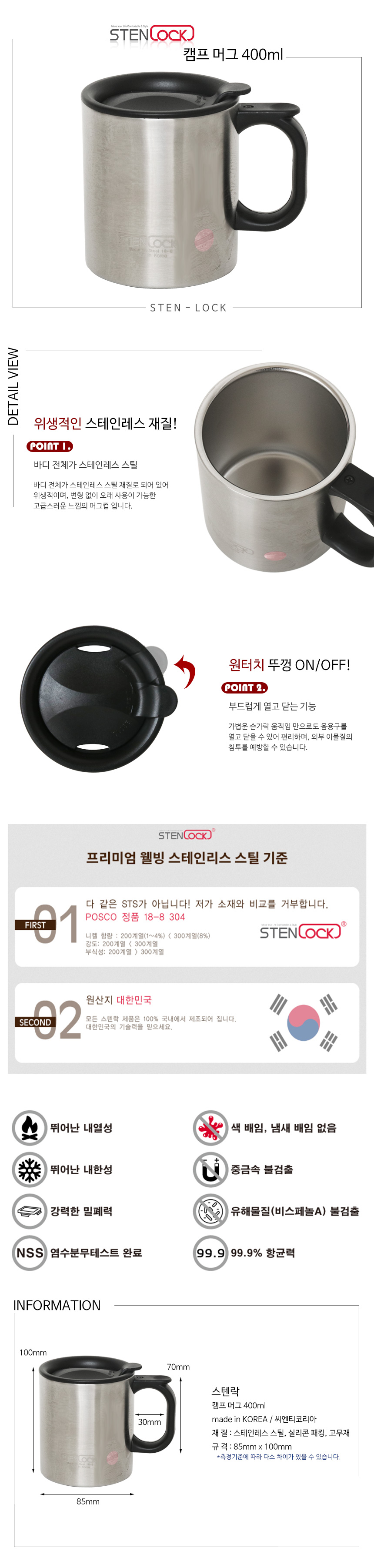 1. 품명 및 모델명 : 이중 스텐 머그컵 400ml 1P 캠핑 머그잔 휴대용 컵 / 상세정보별도표시