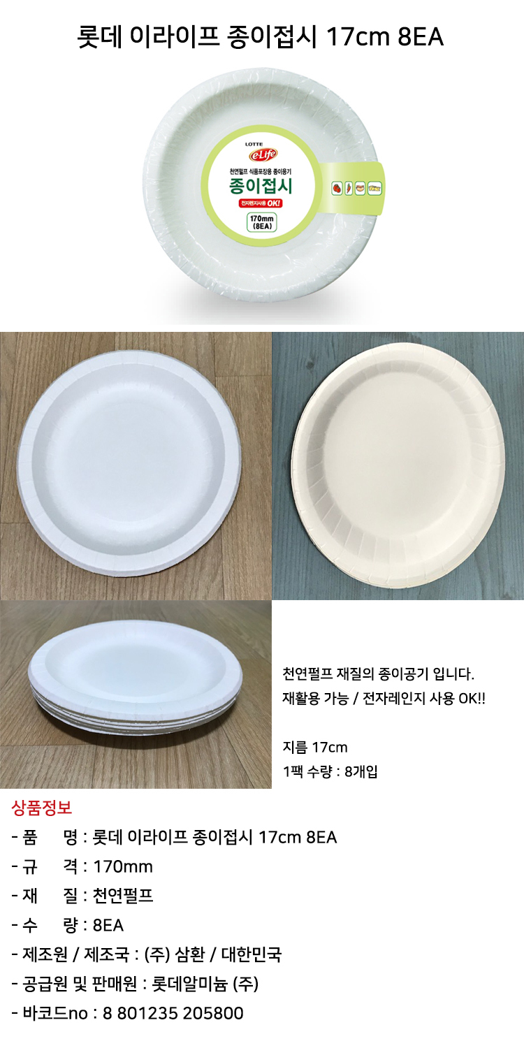 롯데 이라이프 종이접시 17cm 8EA 이미지/