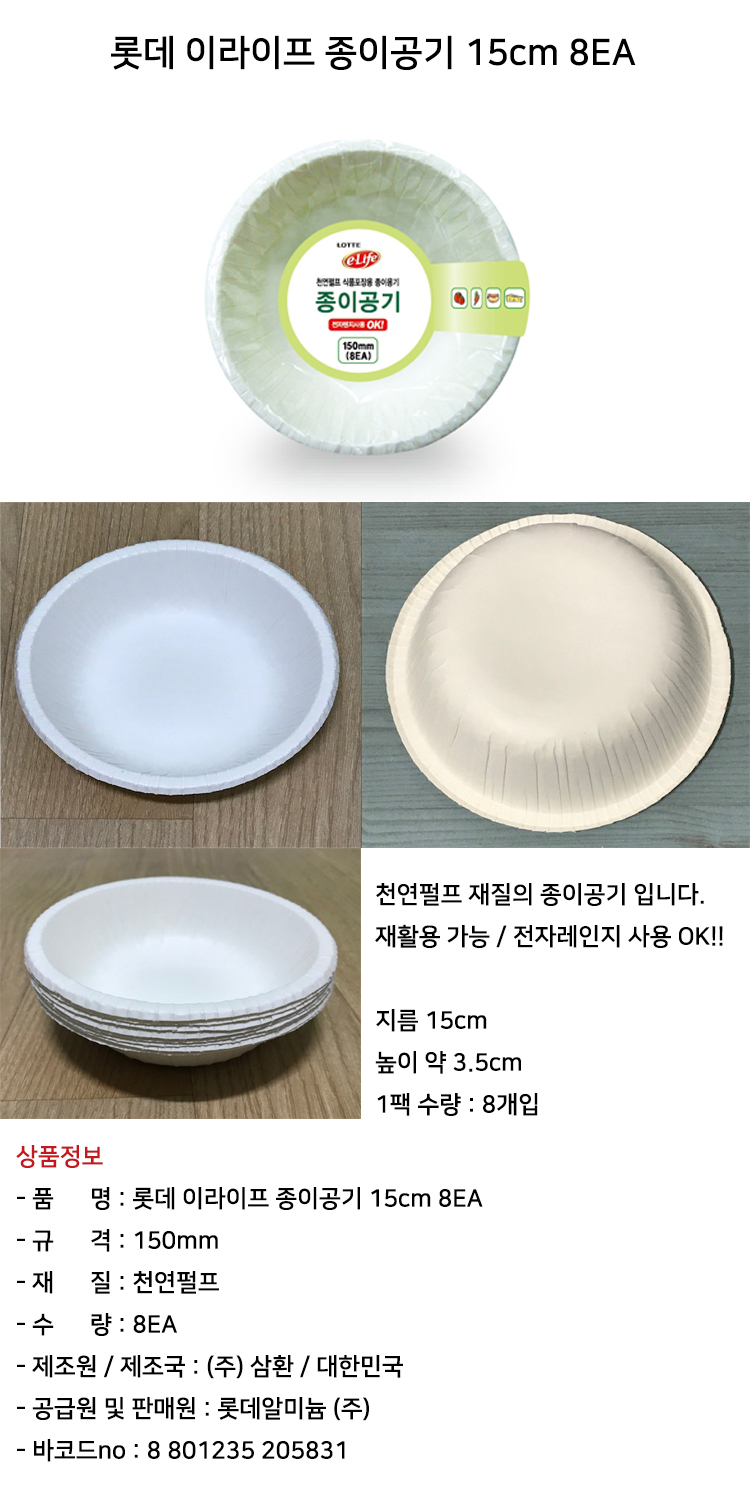 롯데 이라이프 종이공기 15cm 8EA 이미지/