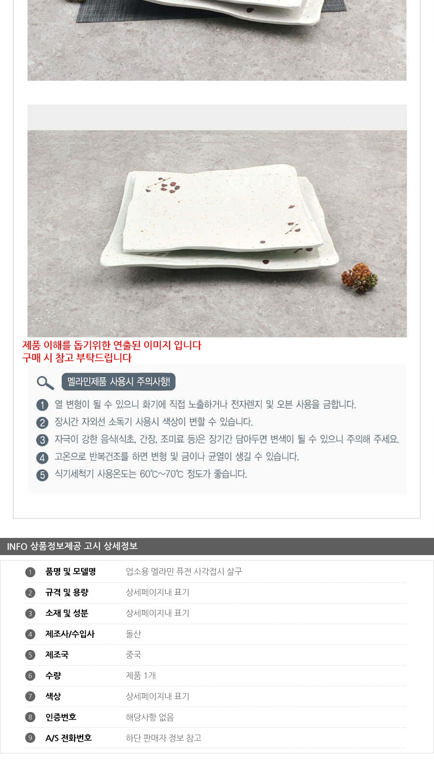 업소용 멜라민 퓨전 사각접시 살구 4호 이미지/