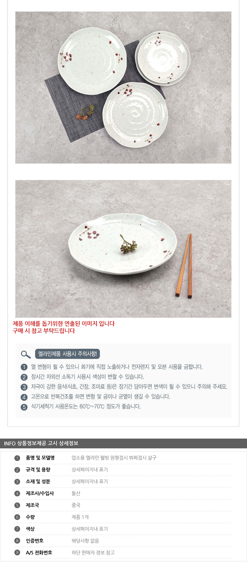 업소용 멜라민 웰빙 원형접시 뷔페접시 살구 8호 이미지/