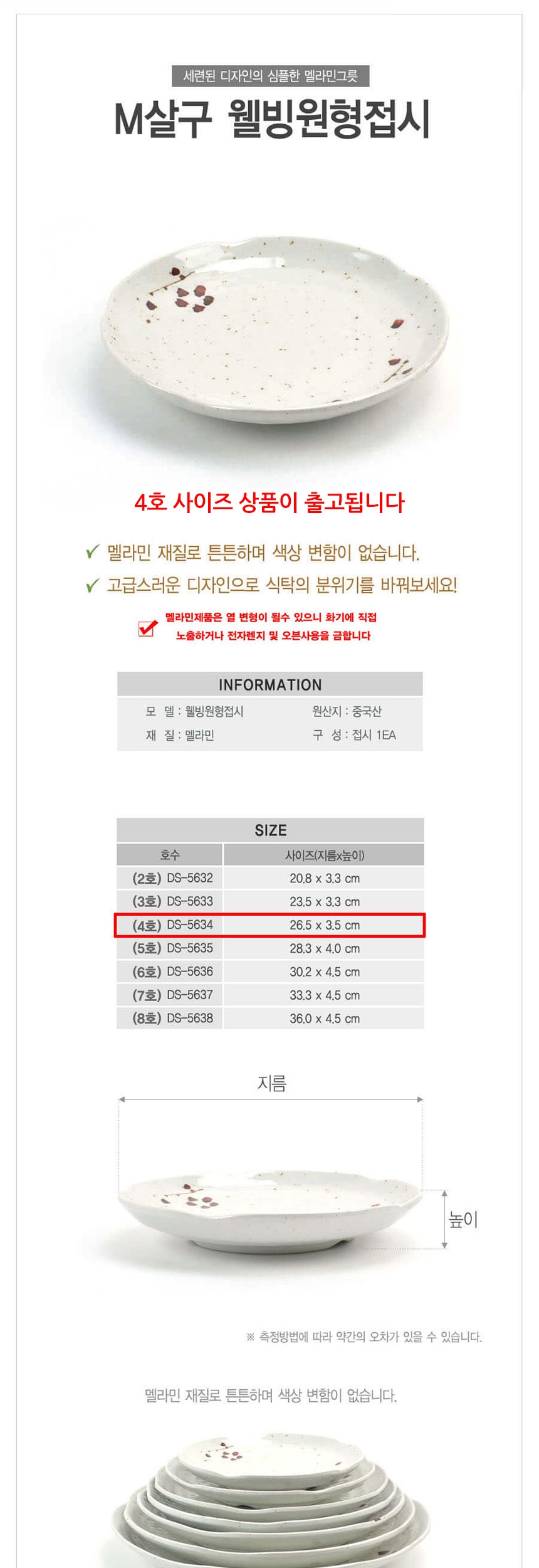업소용 멜라민 웰빙 원형접시 뷔페접시 살구 4호