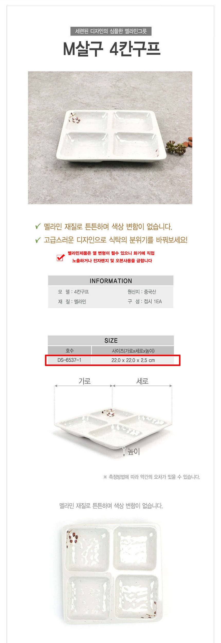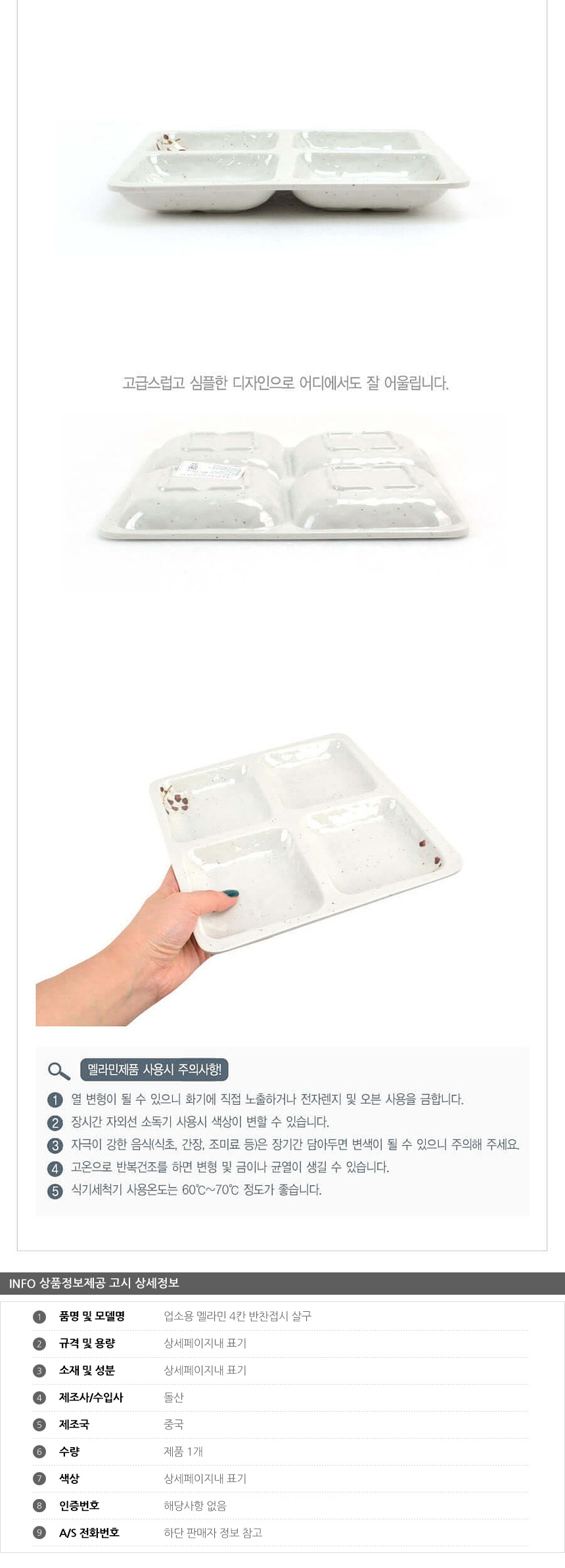 업소용 멜라민 4칸 반찬접시 살구