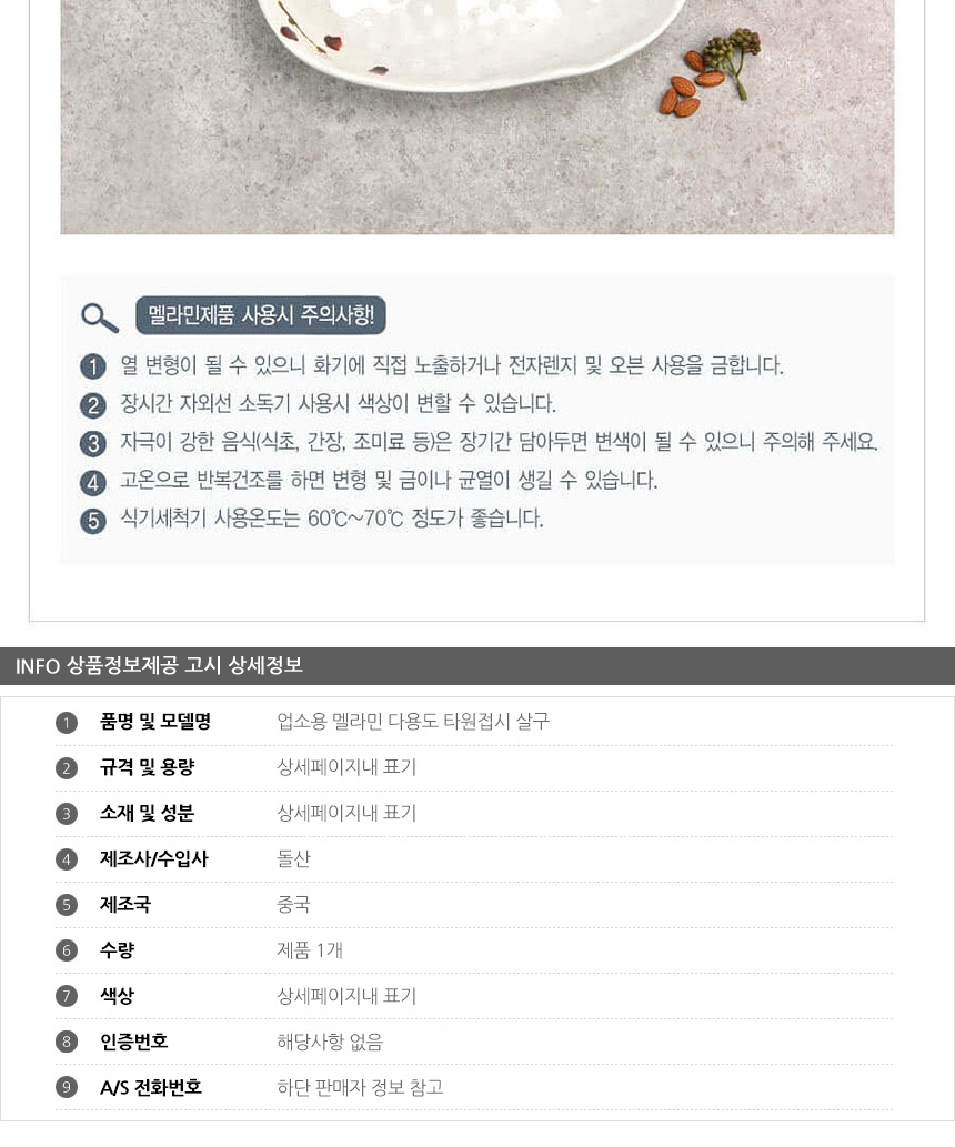 업소용 멜라민 다용도 타원접시 살구 이미지/