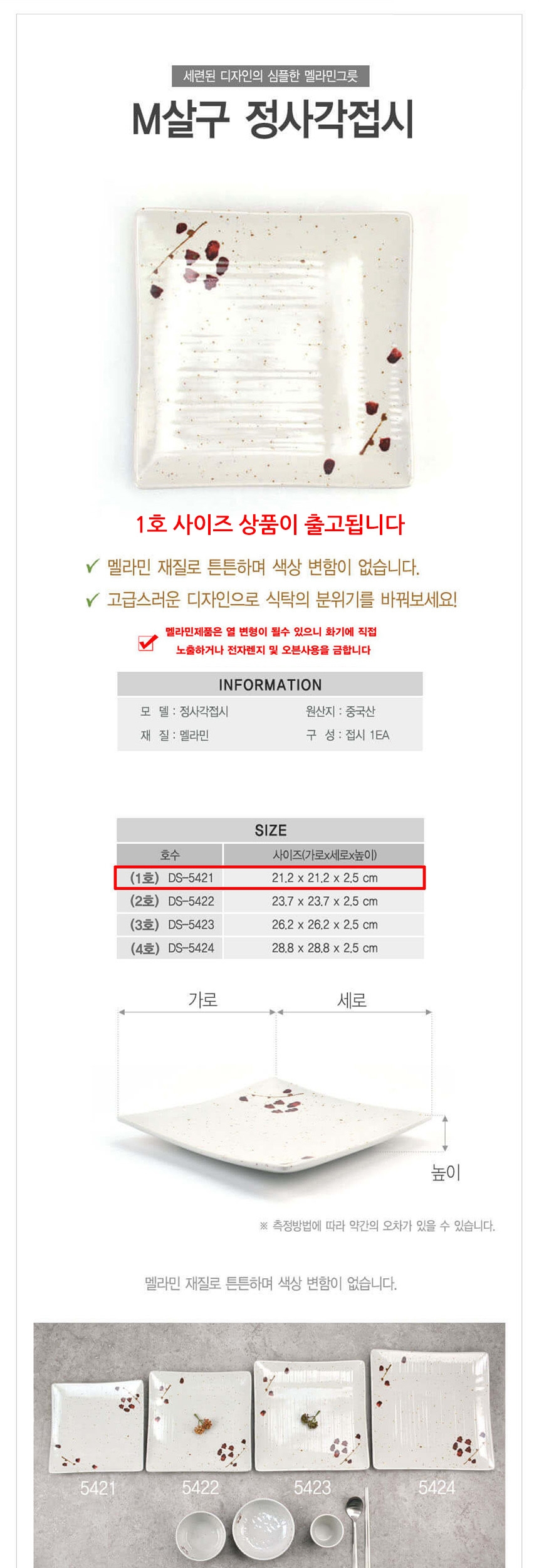 멜라민 퓨전토기 스페셜 사각찬기 앞접시 3호