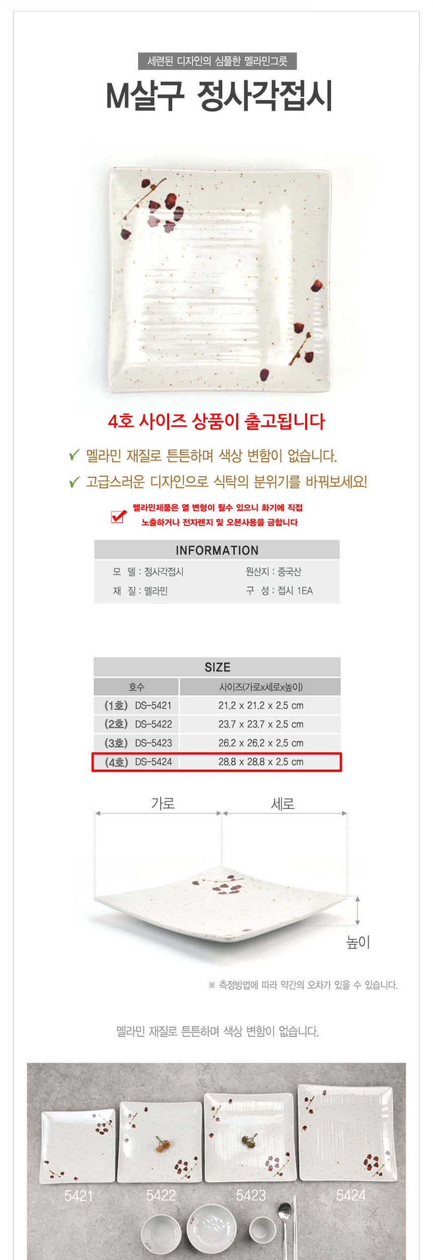 업소용 멜라민 정사각접시 살구 4호