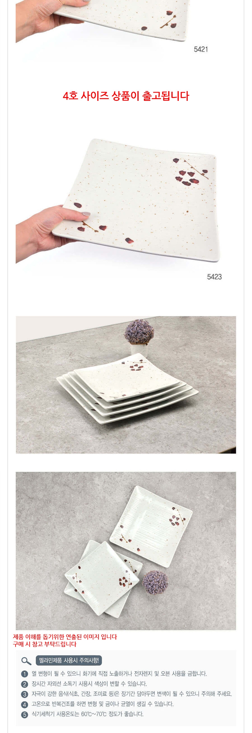 업소용 멜라민 정사각접시 살구 4호 이미지/