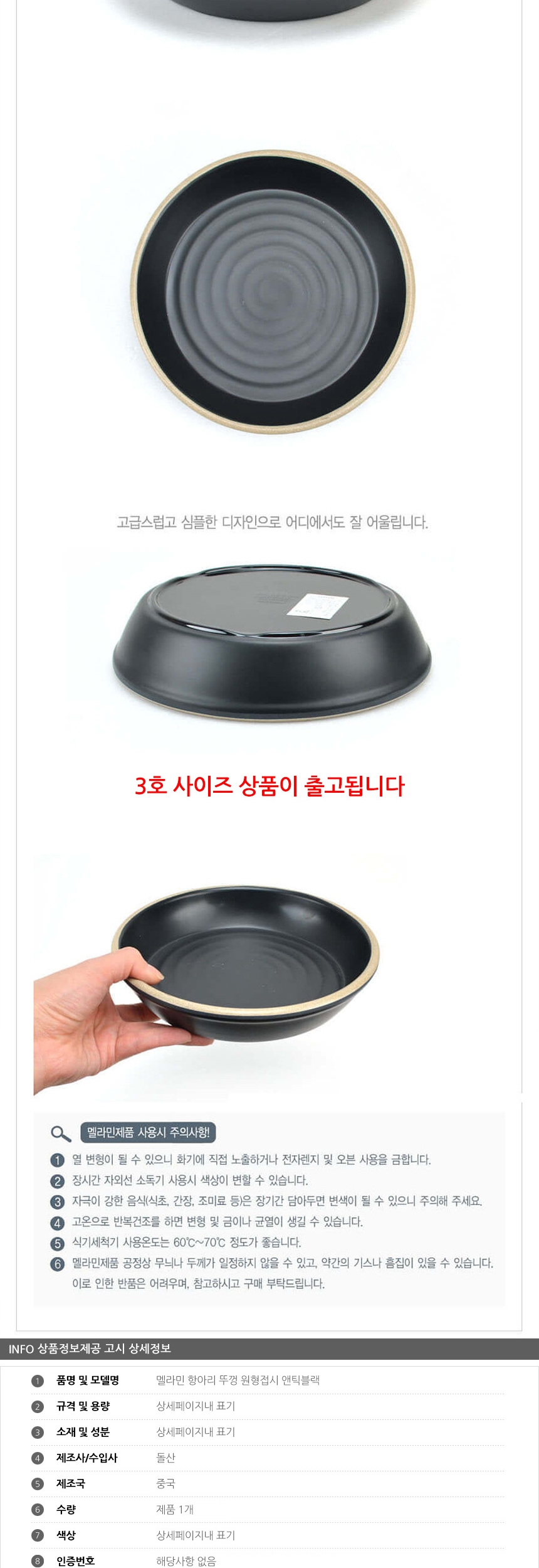 멜라민 항아리 뚜껑 원형접시 앤틱블랙 3호 24cm