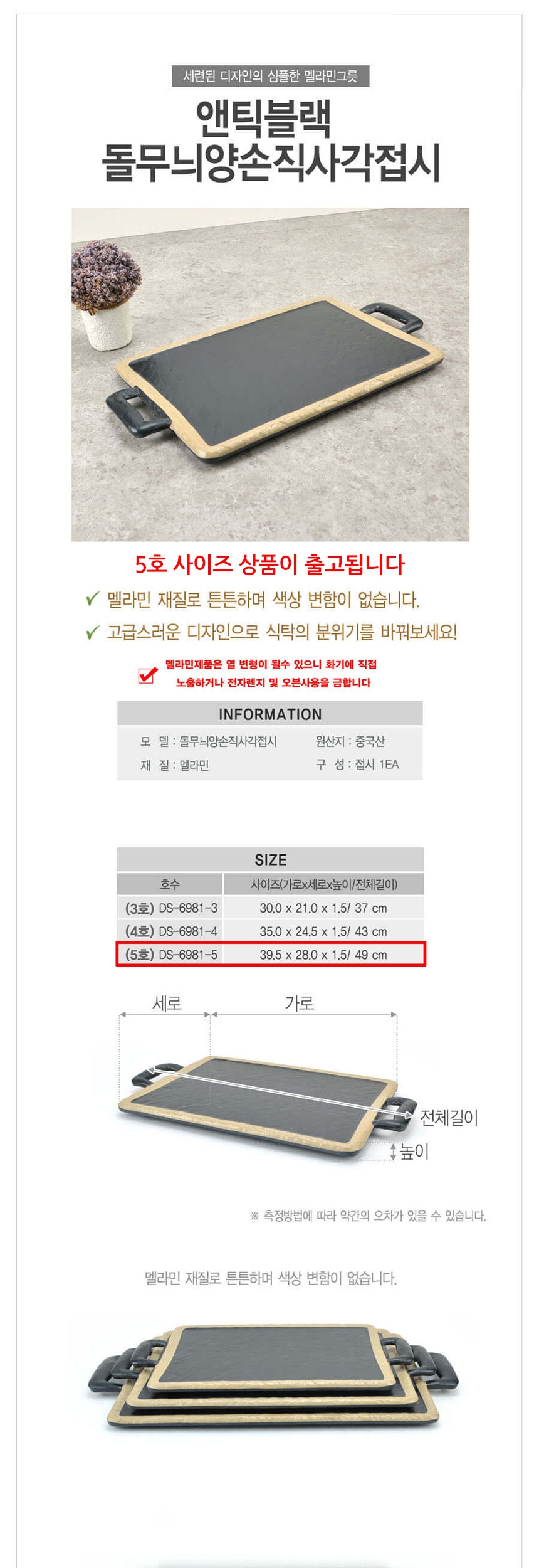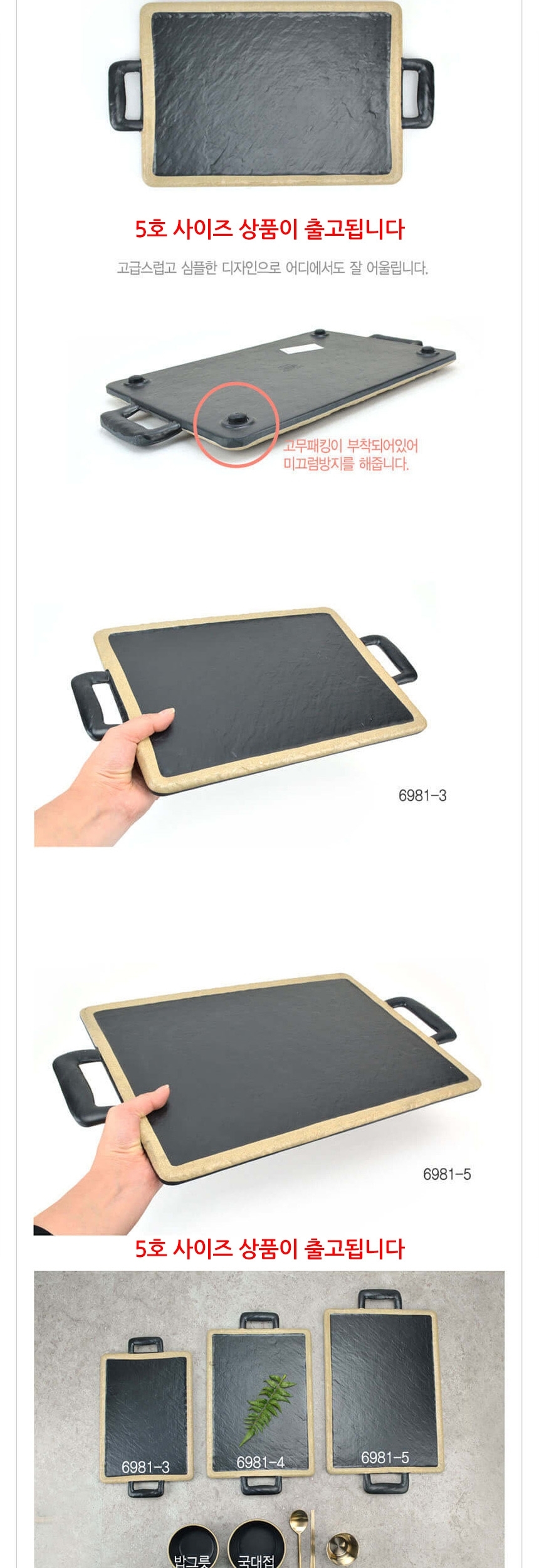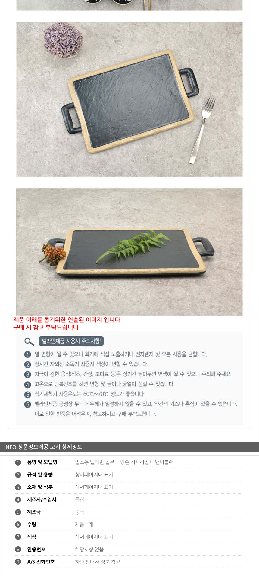 업소용 멜라민 돌무늬 양손 직사각접시 앤틱블랙 5호 이미지/