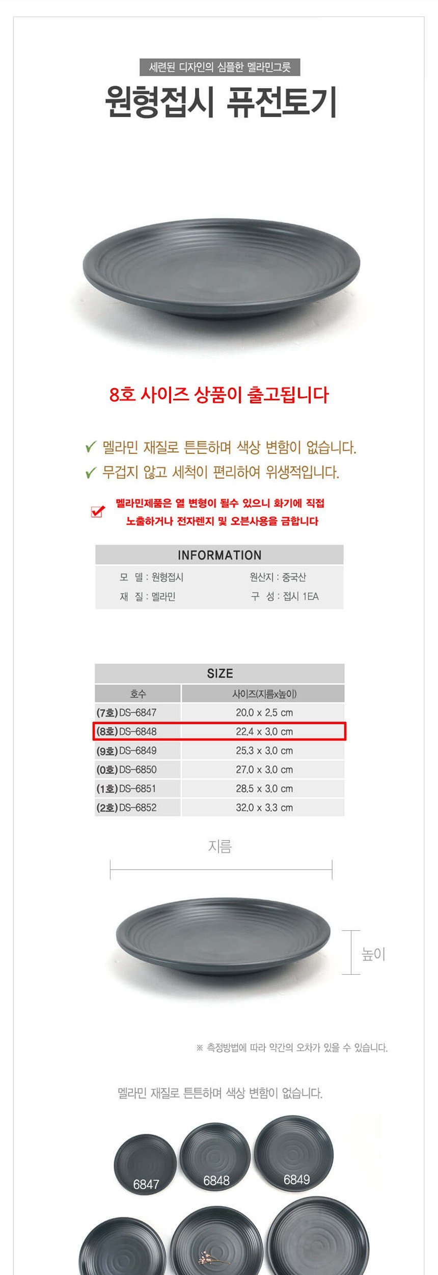 웰빙원형 접시 DS-5634 멜라민 그릇 찬기 업소용