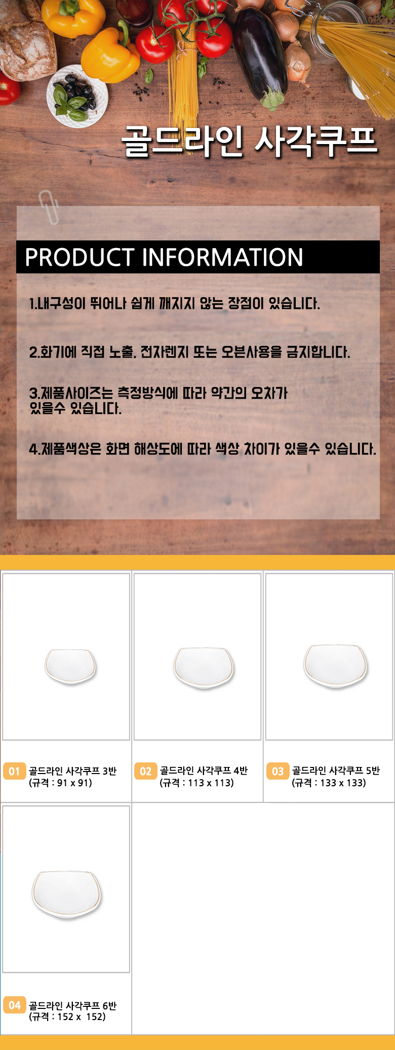 골드라인 사각 쿠프 멜라민 그릇 이미지/