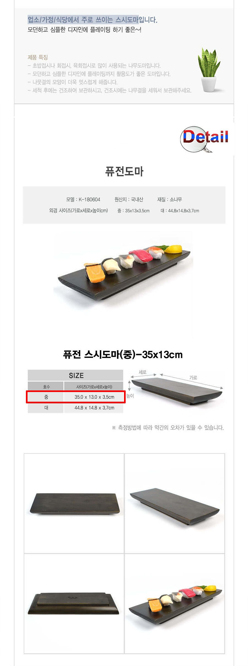 퓨전 스시도마 도마플레이팅 초납나무접시-중 이미지/