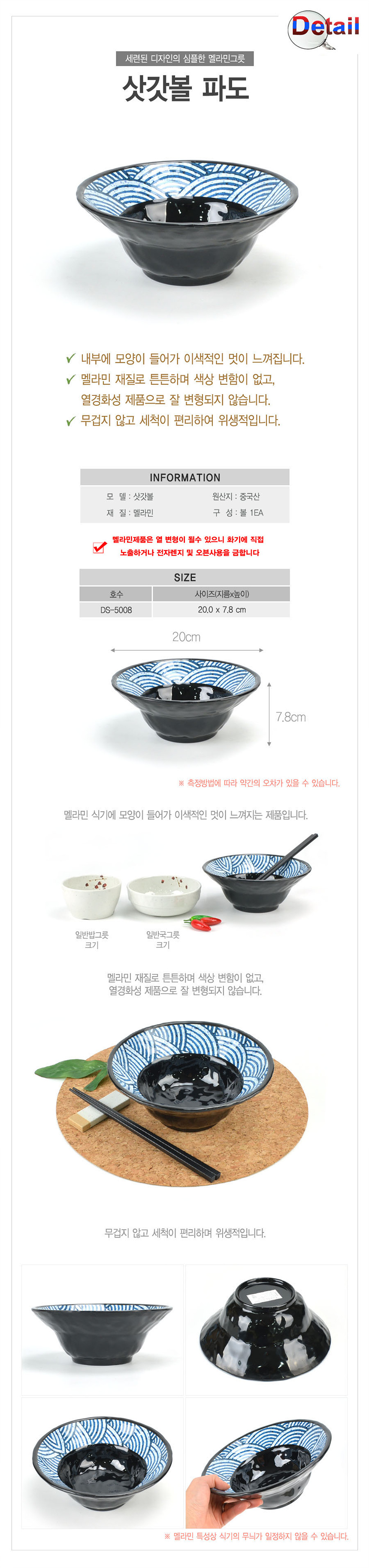 파도 삿갓볼 일식우동기 대접그릇-20cm 이미지/