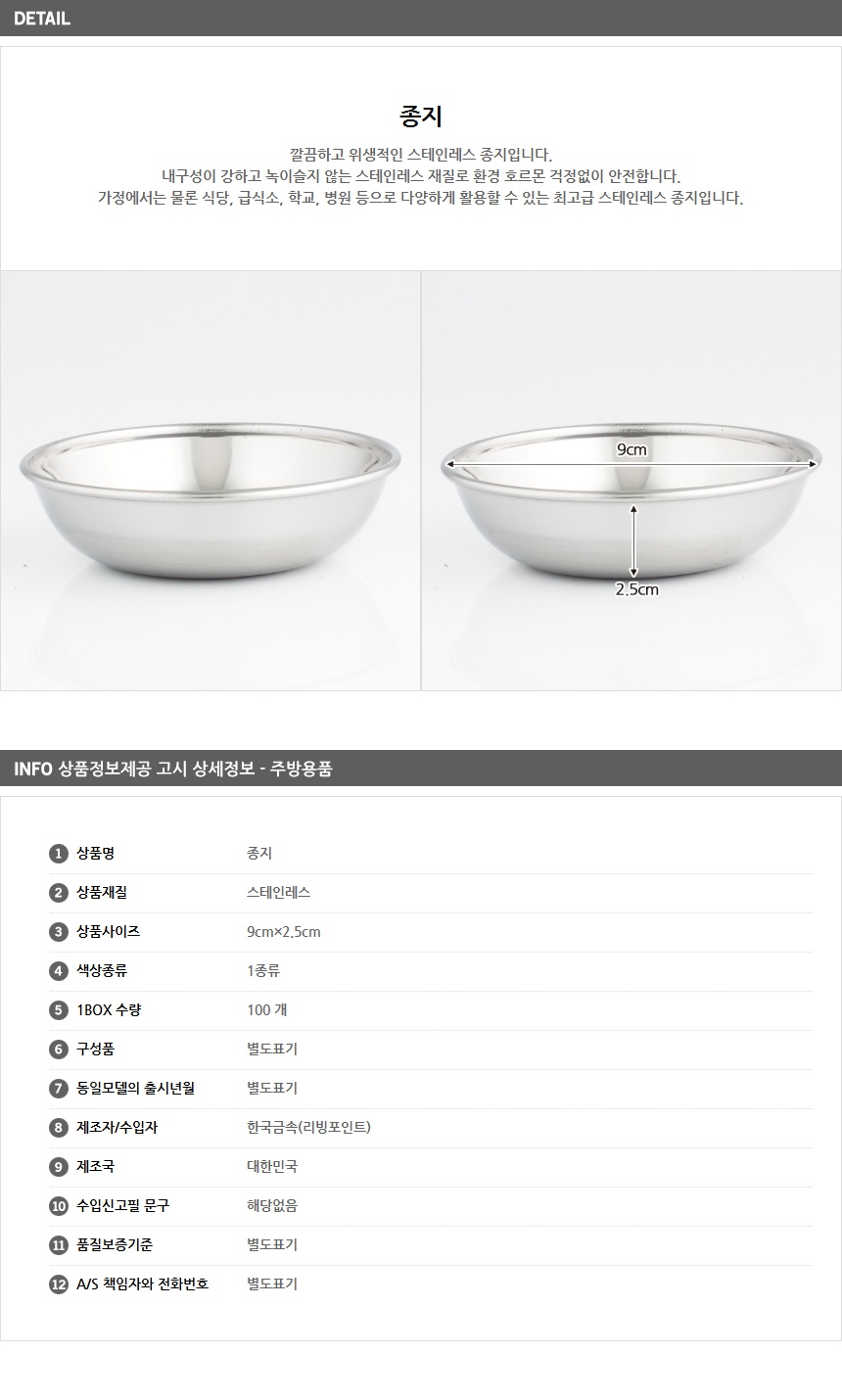 스텐 종지 / 그릇 소스그릇 주방용품