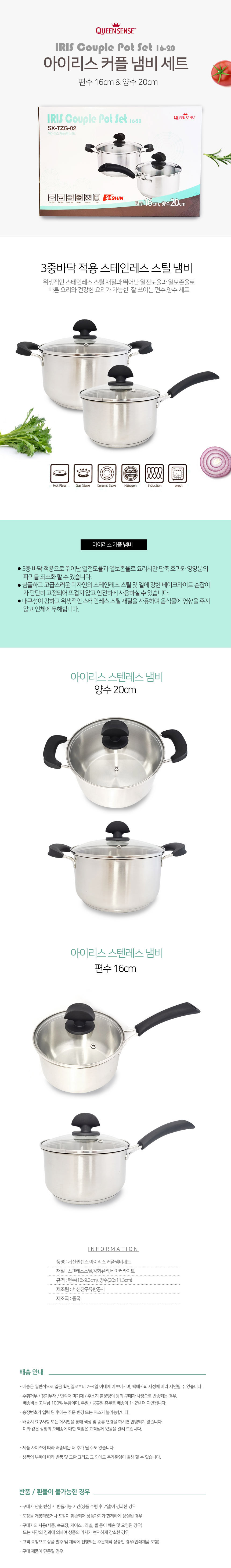 퀸센스 아이리스 커플 냄비세트 편수 양수 3중바닥 프라이팬 주물프라이팬 파스타팬 스텐레스프