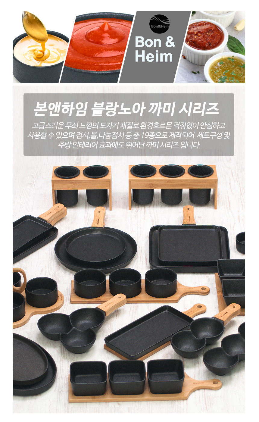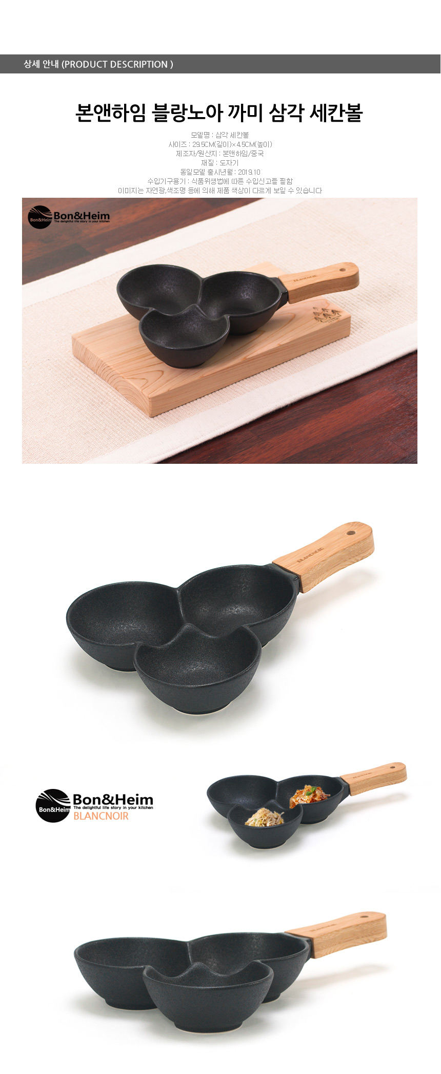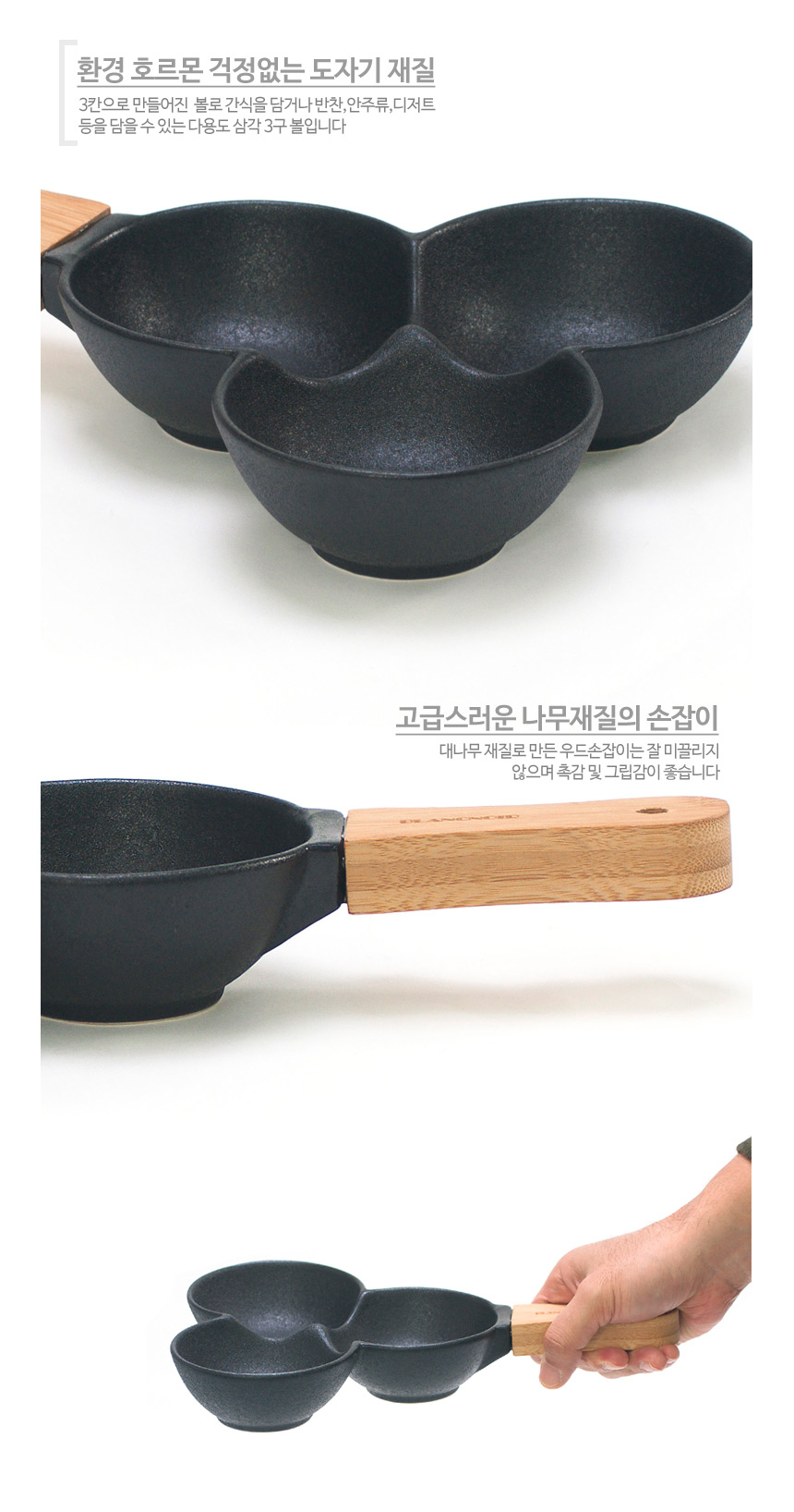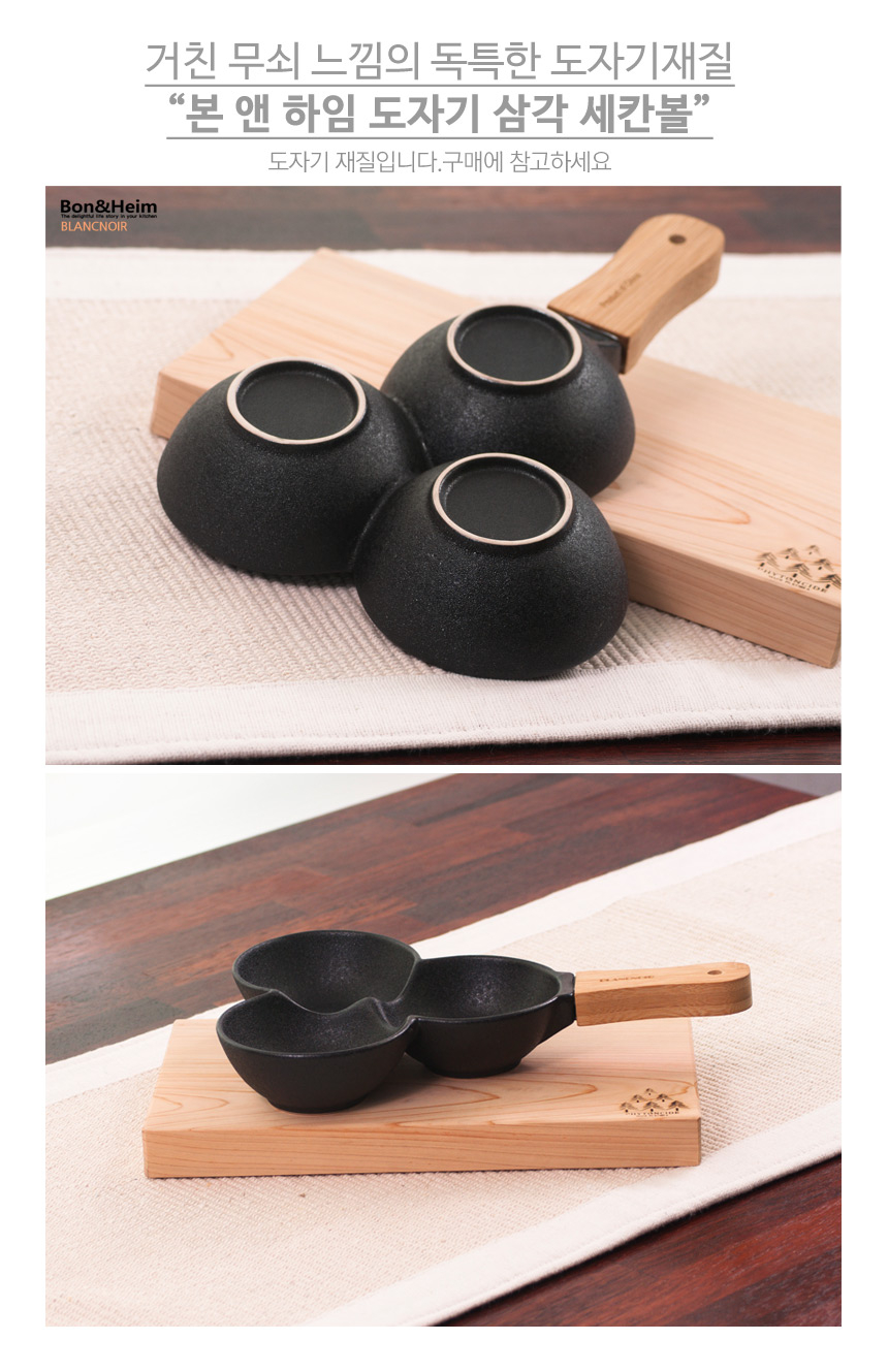 블랑노아 까미 세칸볼 나눔접시 블랙 나무손잡이 이미지/