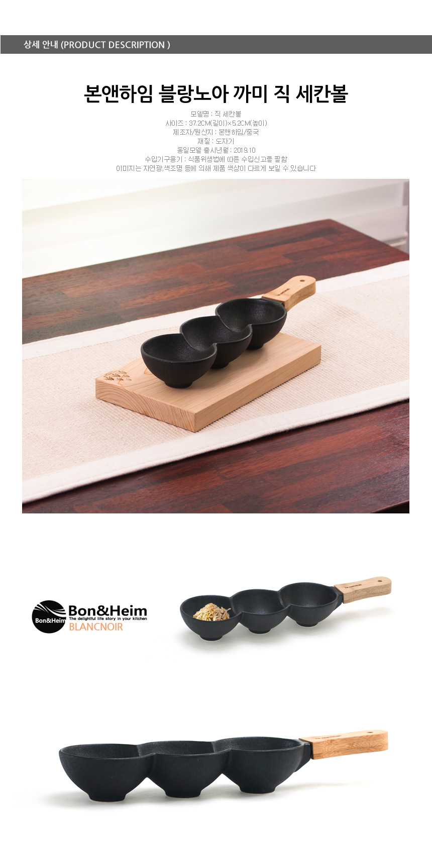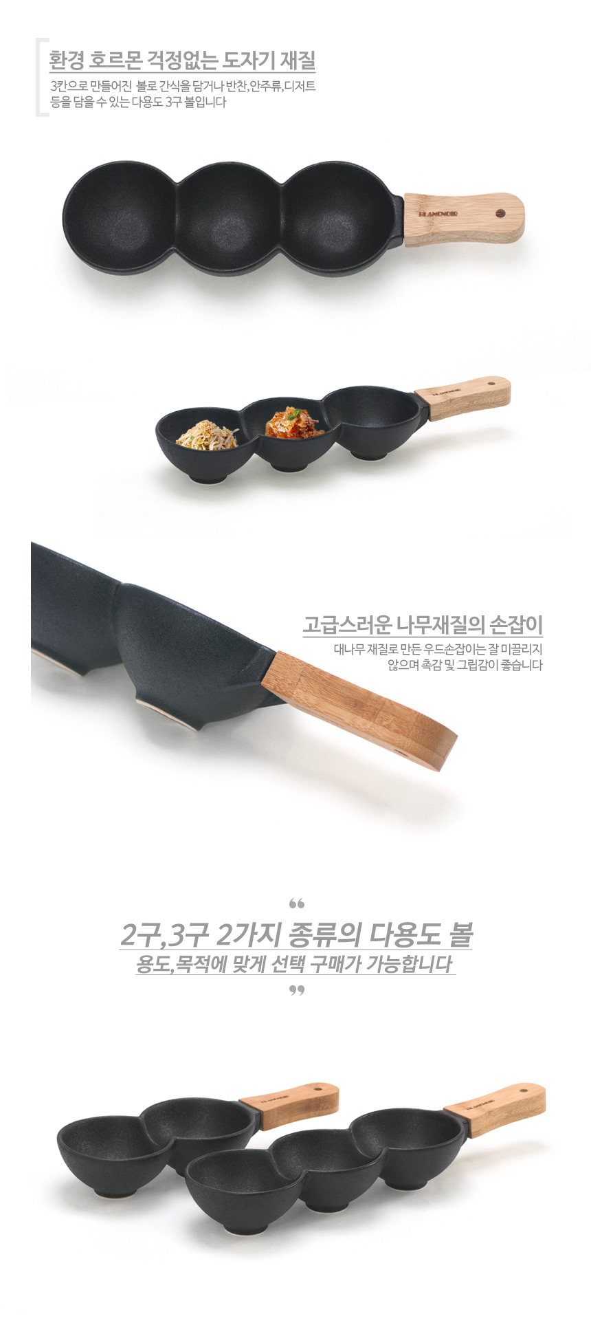 ETC 블랑노아 까미 세칸볼 나눔접시 손잡이 반찬접시 이미지/