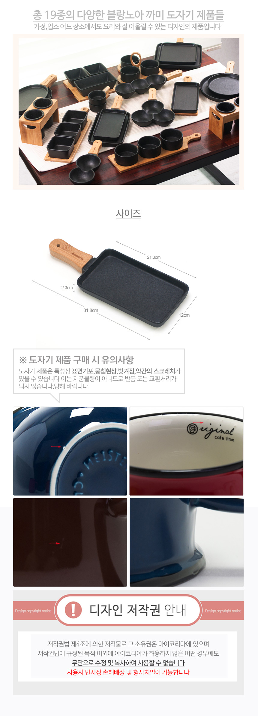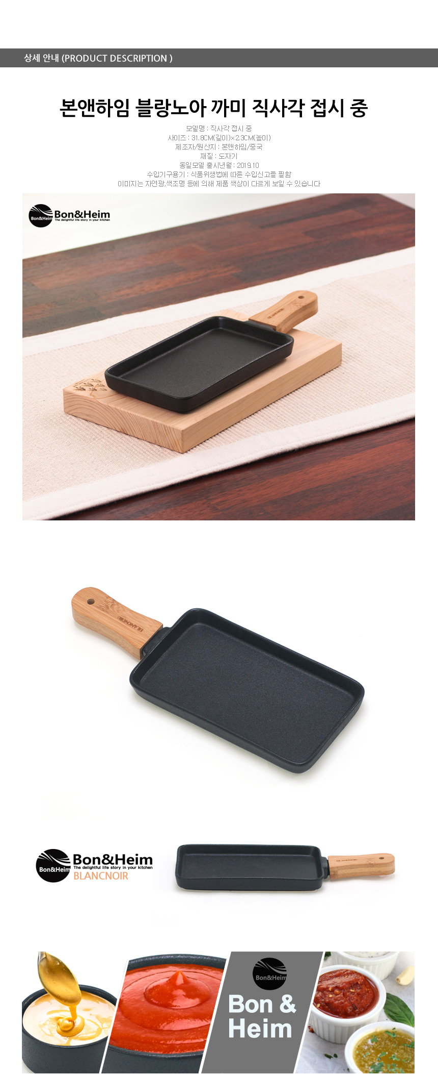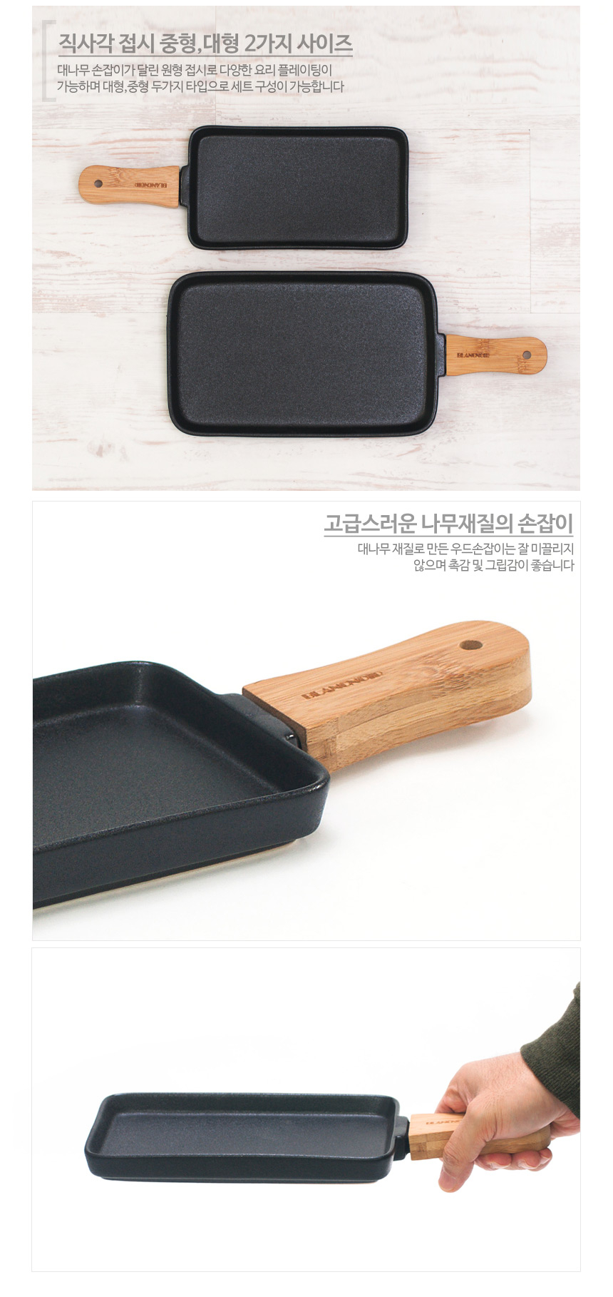 ETC 블랑노아 까미 직사각 접시 중 스테이크접시 손잡이 이미지/