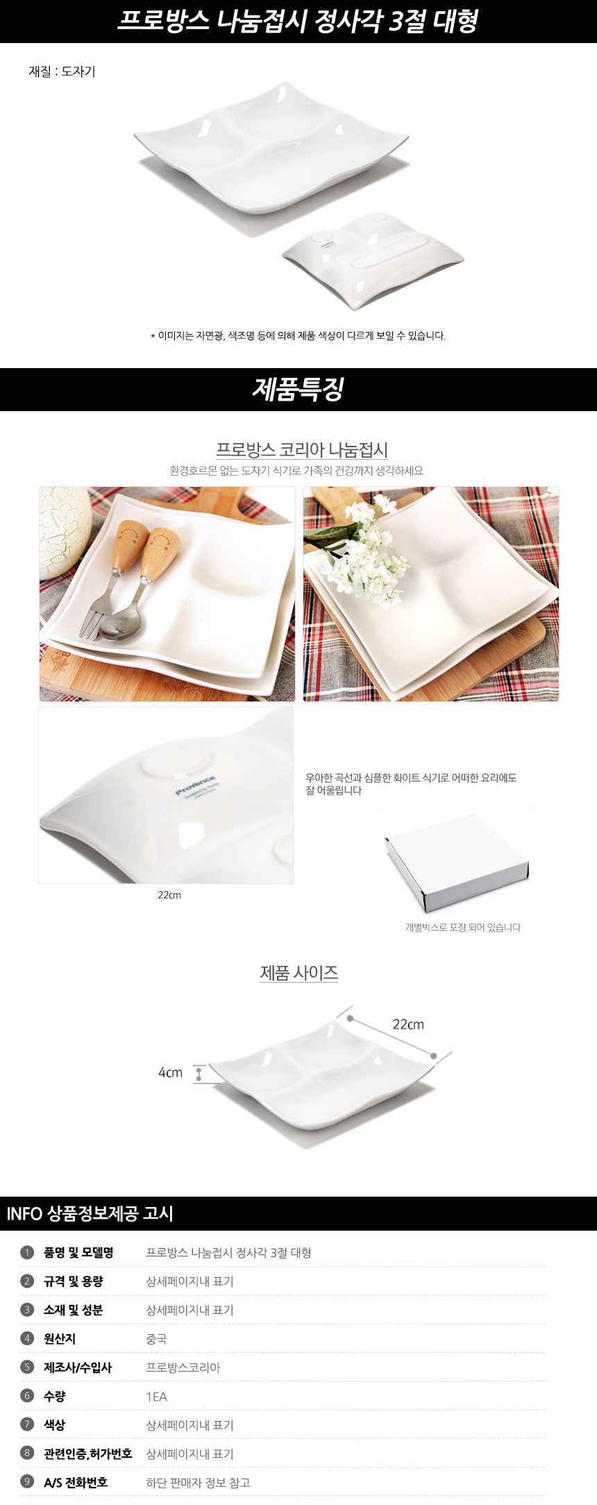 프로방스 나눔접시 정사각 3절 대형 이미지/