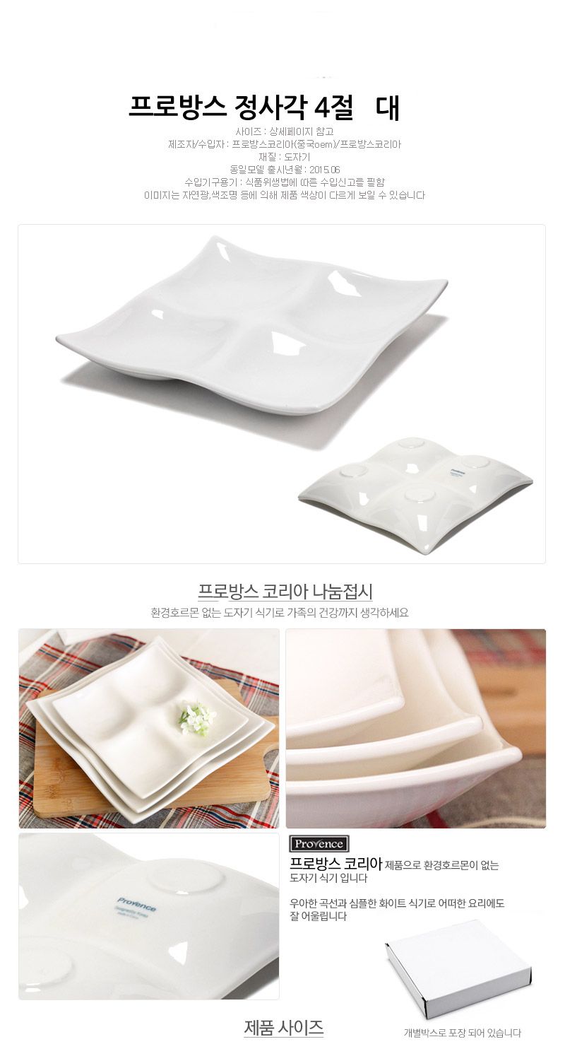 프로방스코리아 도자기 프로방스나눔접시 정사각 4절 (대) 이미지/