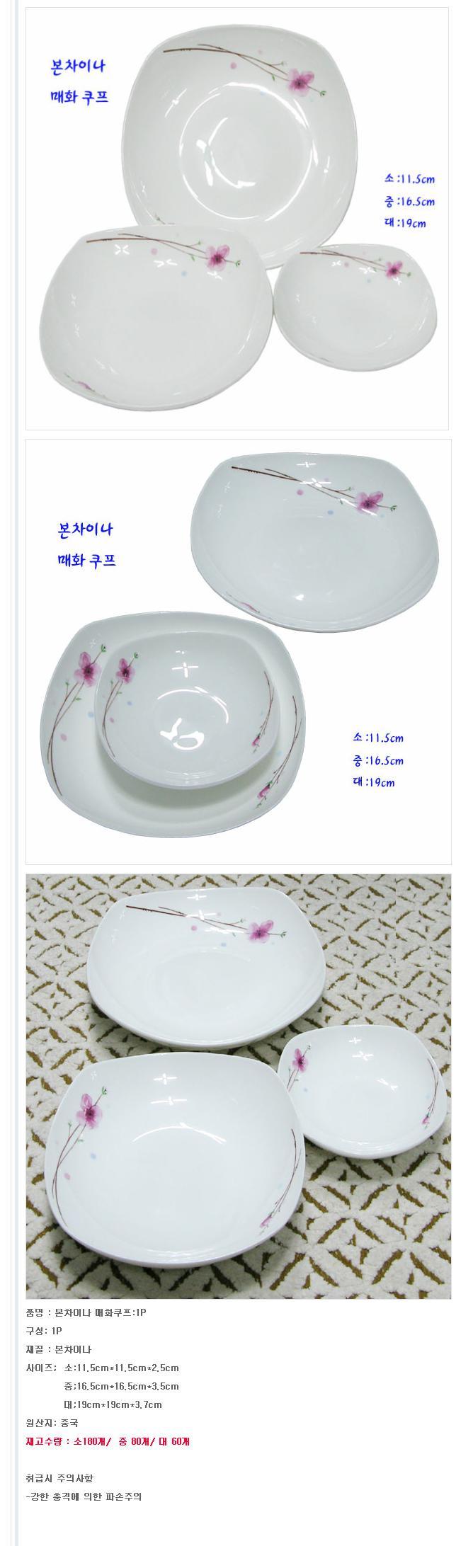 반디 본차이나 매화 사각접시 1개 쿠프 식기 그릇 찬기 앞접시