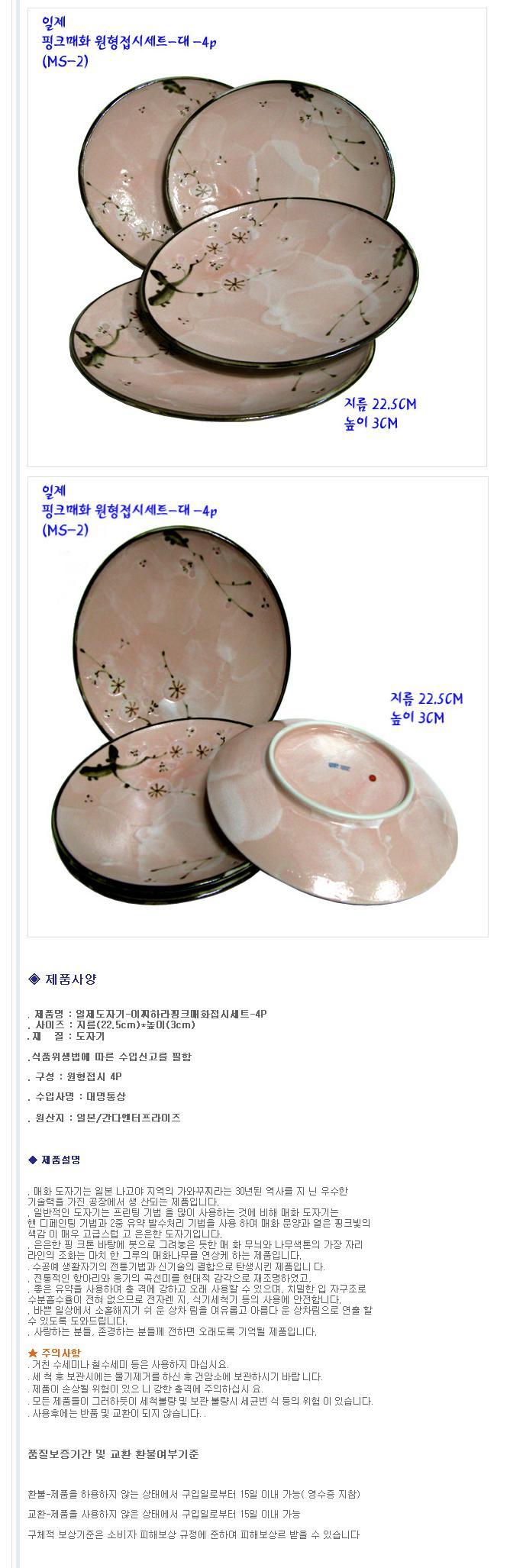 간다엔터프라이즈 매화 원형 접시 (대) 23cm 4개 식기 그릇 앞접시 찬기 이미지/