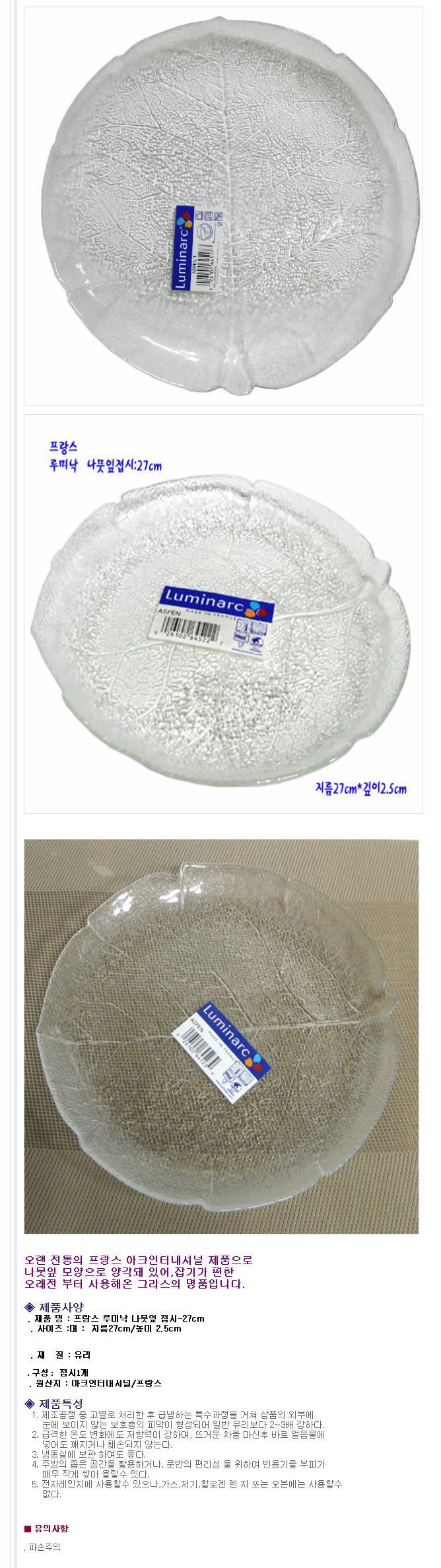 아크인터네셔널 루미낙 나뭇잎 유리 접시 (대) 27cm 쿠프 대접 식기 그릇