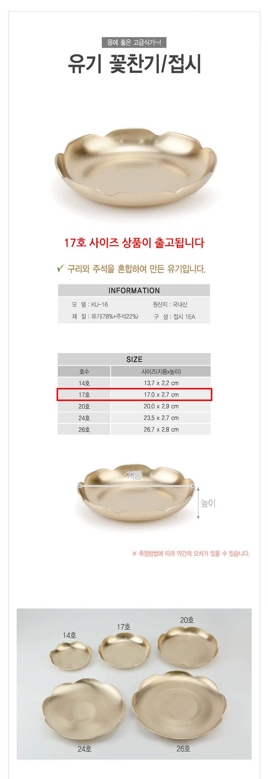 방짜유기 꽃접시 놋그릇 17호 17cm