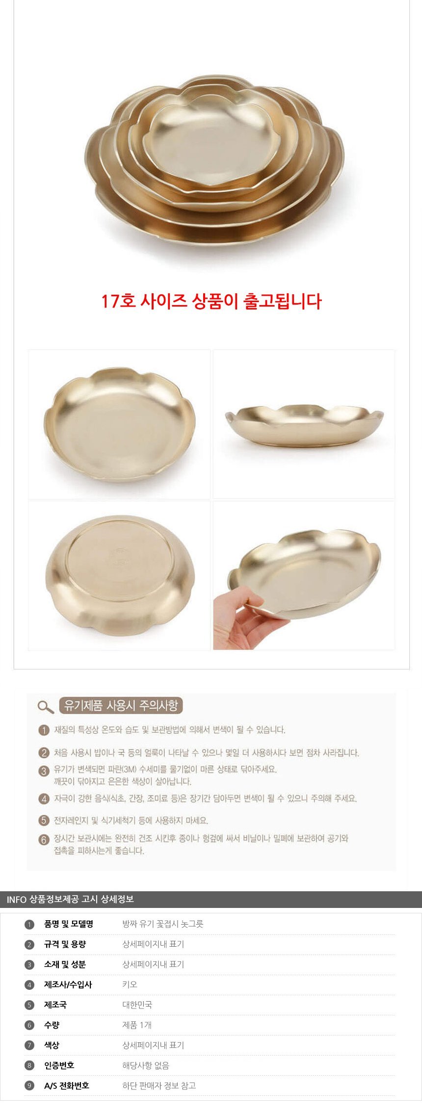 방짜유기 꽃접시 놋그릇 17호 17cm 이미지/