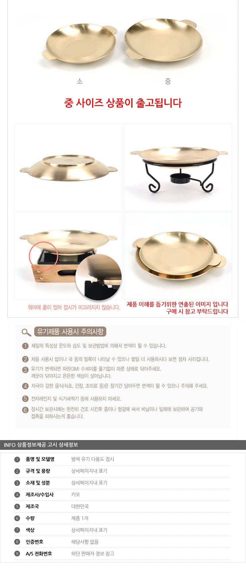 방짜유기 다용도 접시 중형 26cm 이미지/