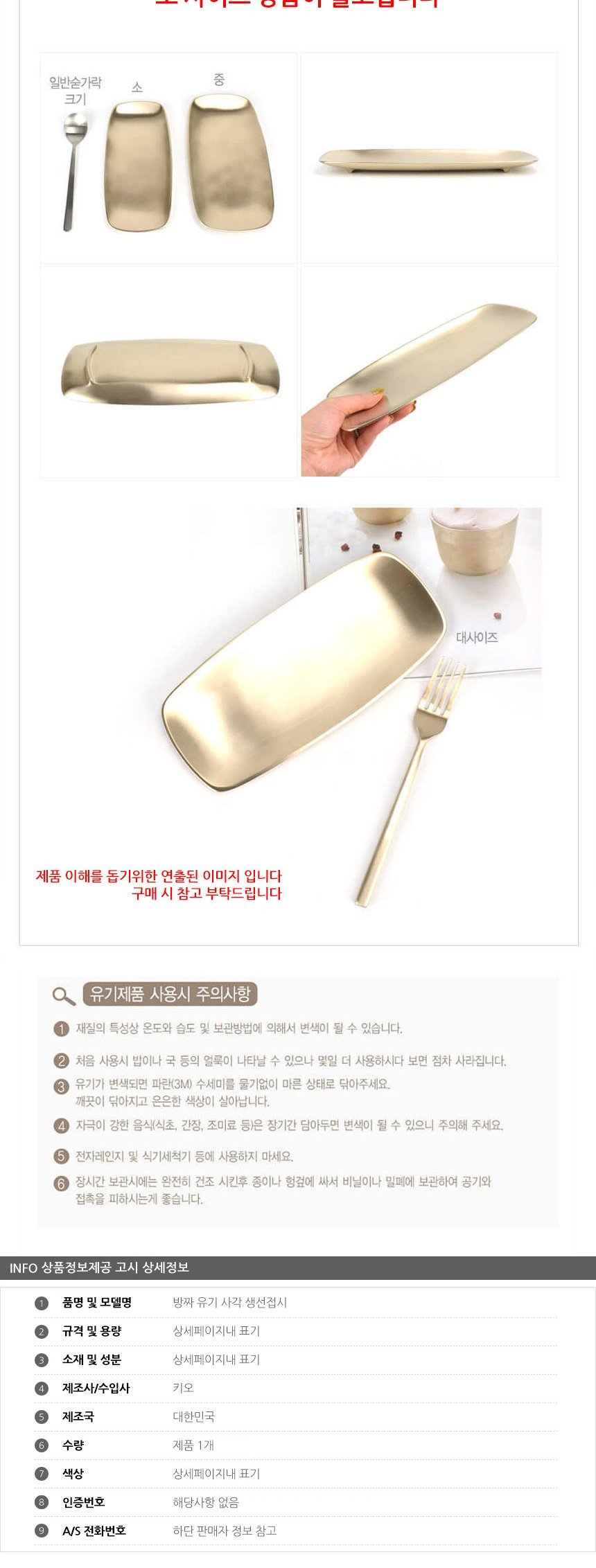 방짜유기 사각 생선접시 소형