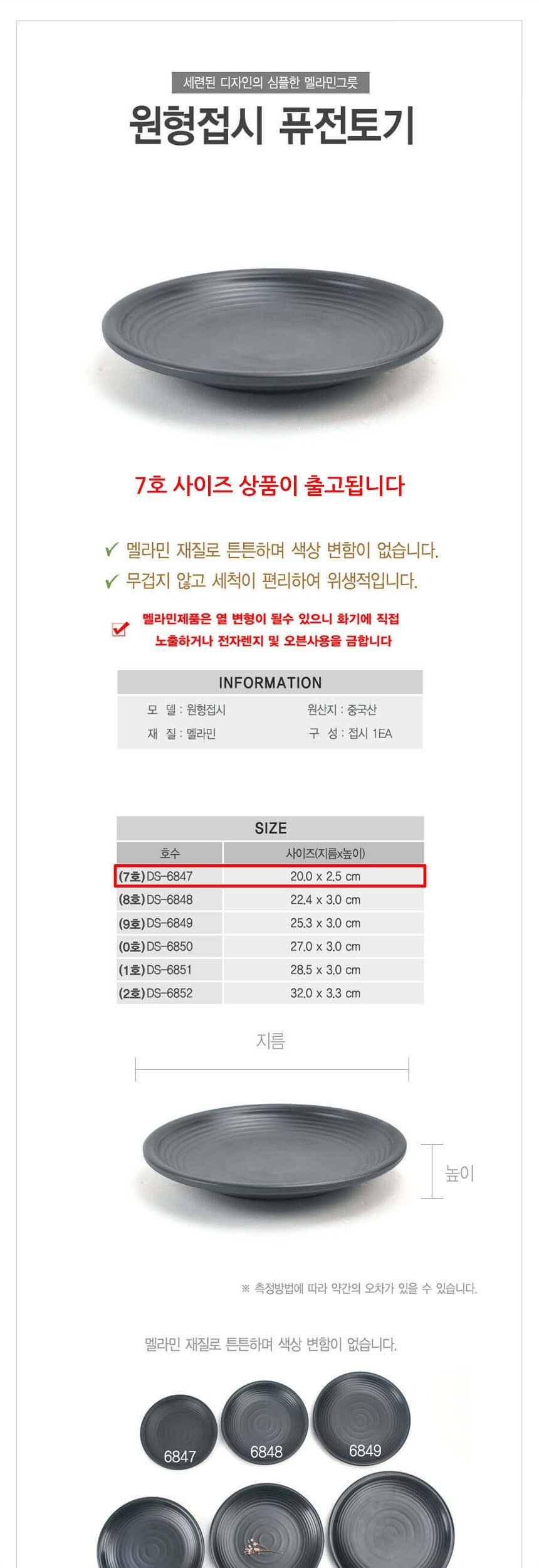 멜라민 퓨전토기 원형접시 7호 20cm