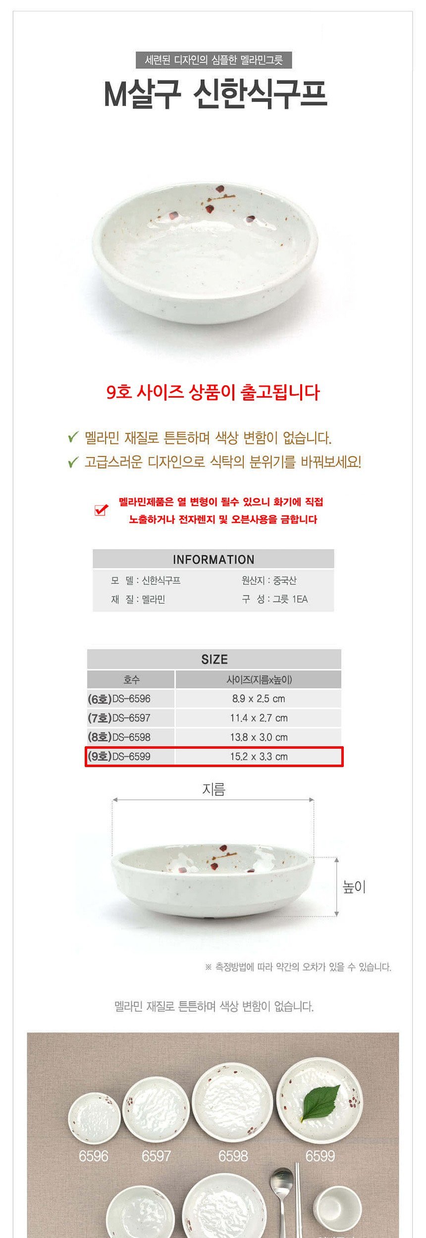 멜라민 업소용 원형찬기 살구 9호 15cm