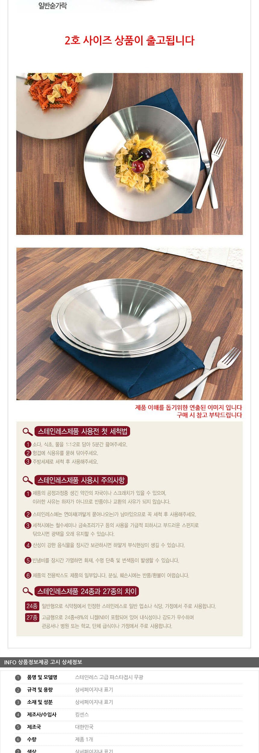 스테인레스 고급 파스타접시 무광 2호 27cm 이미지/