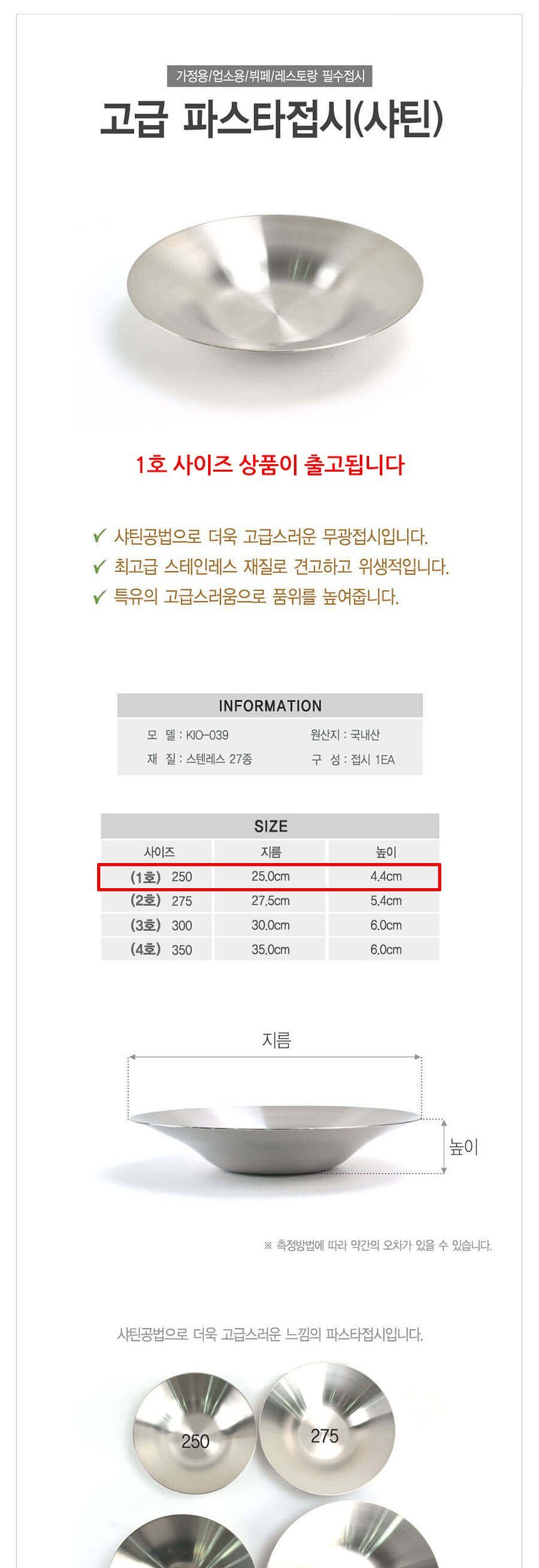 스테인레스 고급 파스타접시 무광 1호 25cm