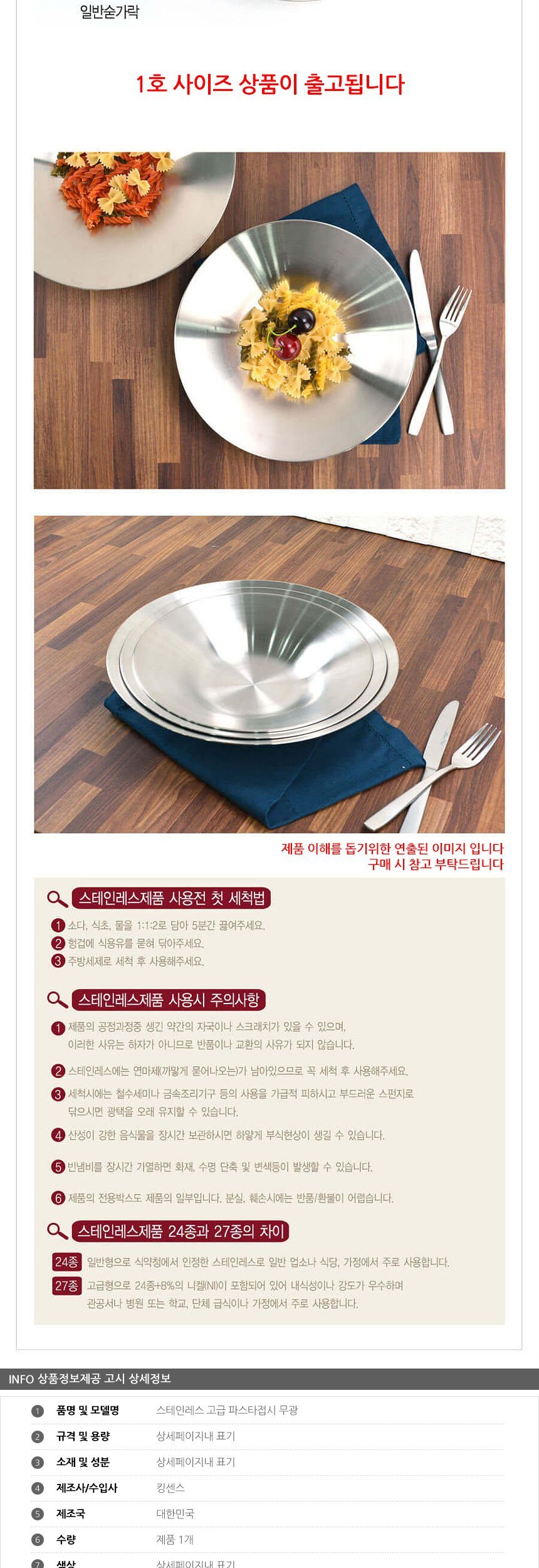 스테인레스 고급 파스타접시 무광 1호 25cm 이미지/