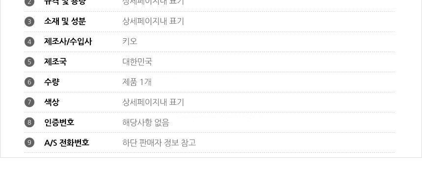 1. 품명 및 모델명 : 상품상세설명참조