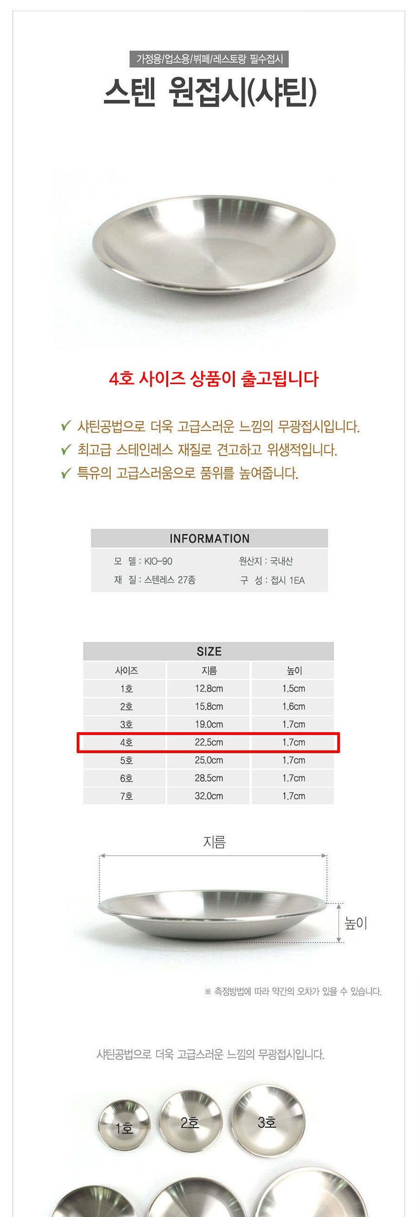 업소용 스테인레스 후지 원형접시 무광 4호 22cm 이미지/