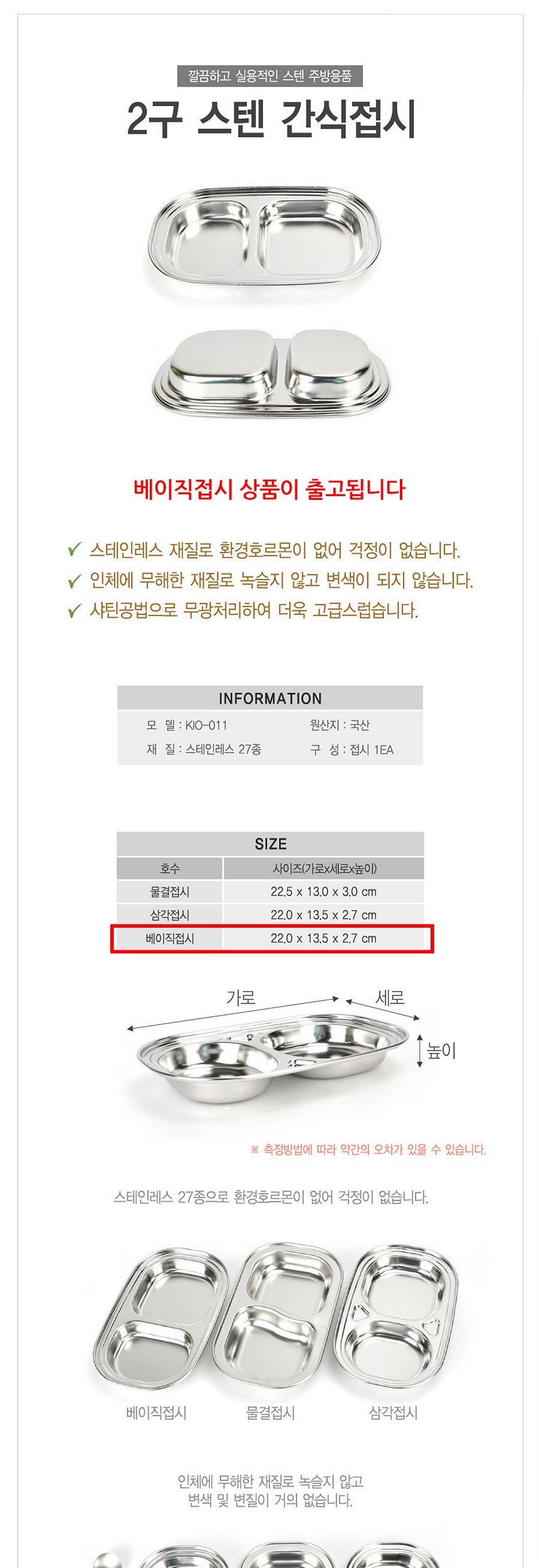 스테인레스 다용도 2구 베이직 간식접시 반찬접시 이미지/